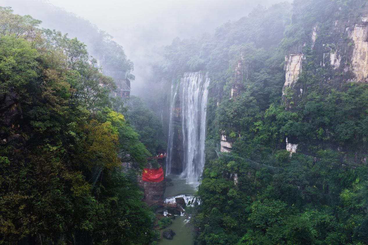 百米瀑布映红旗,暖心早餐宠游客 三峡大瀑布这个国庆很贴心!