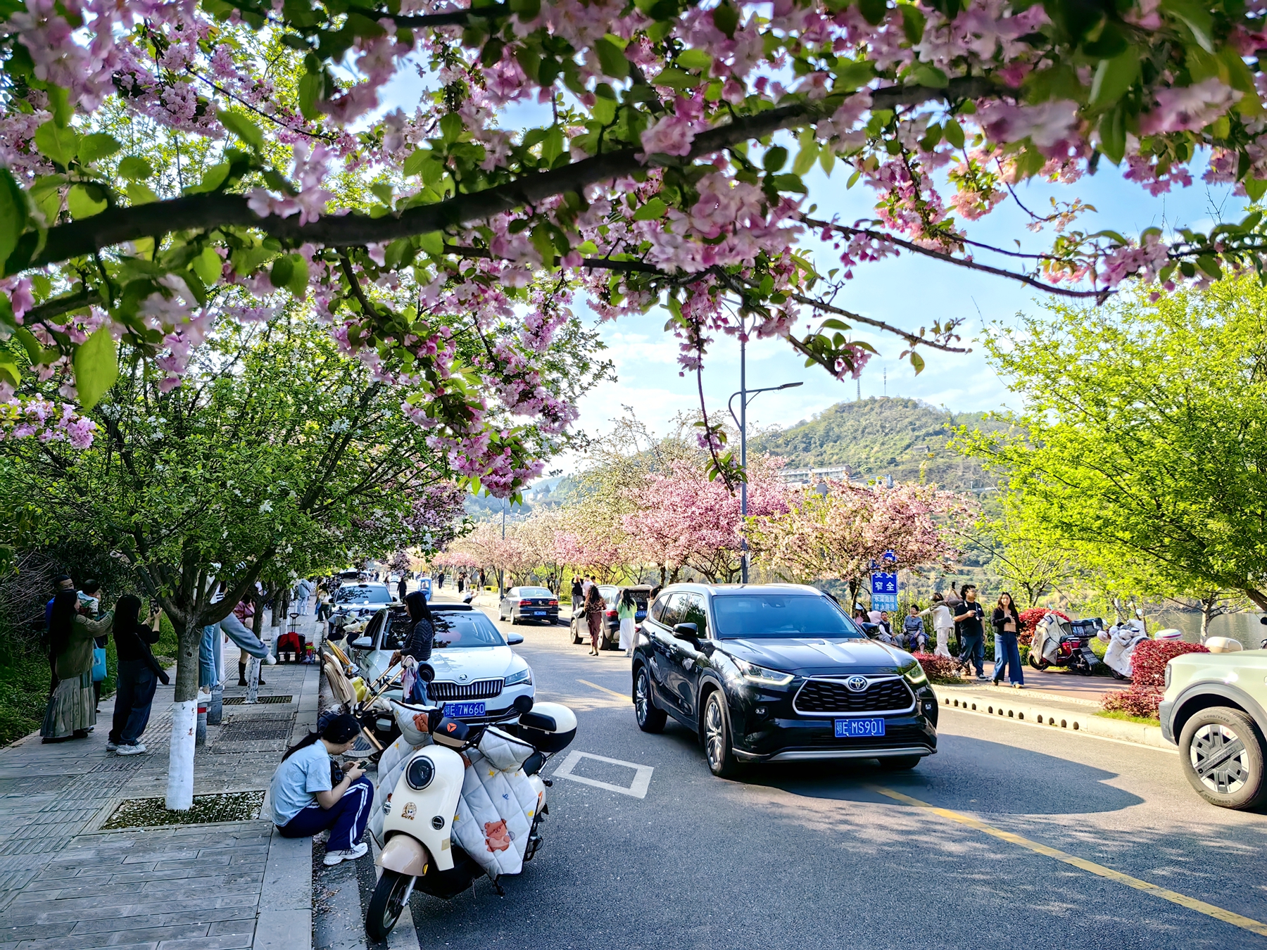 峡江路上春意浓 海棠花海引客来