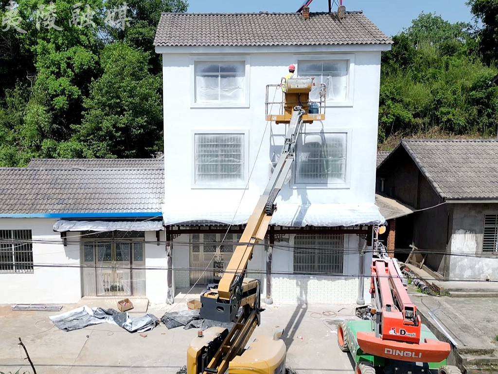 “呲呲呲……”近日,在鸦鹊岭镇东西泉村,工人师傅手拿喷枪,洁白的漆料被均匀地喷涂在墙面,乡居民房瞬间焕然一新,穿上了新衣。棕红的窗框、浮雕的屋檐,一栋栋古韵十足的民房矗立在绿树成荫的乡道一侧,格外美丽。