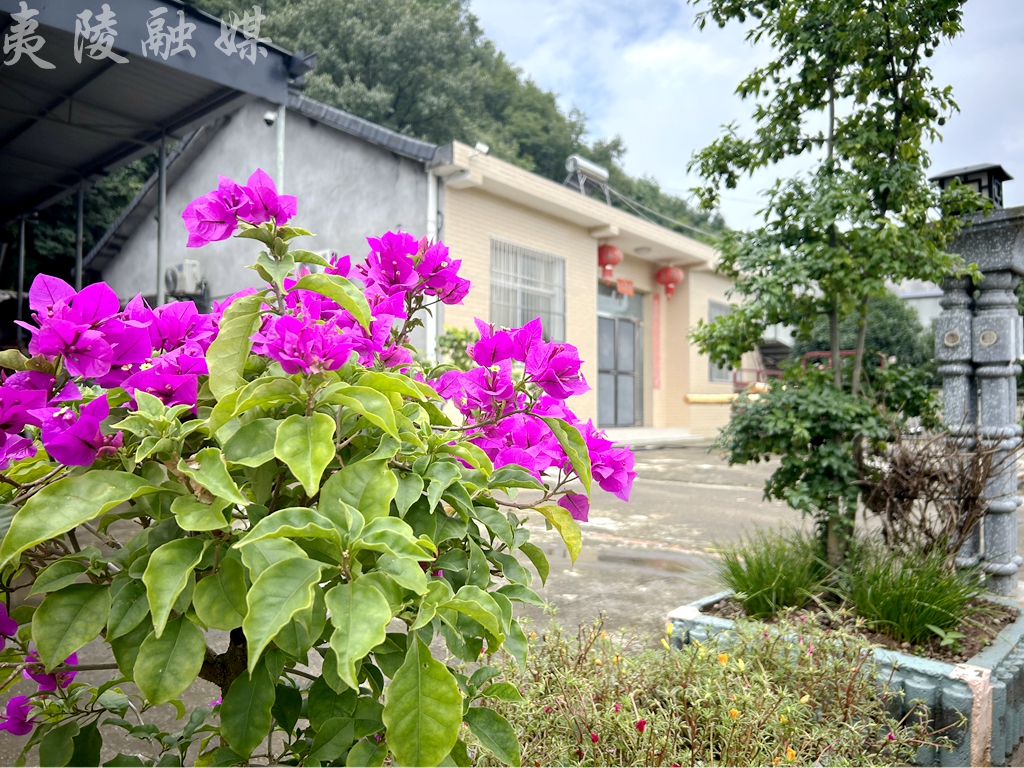 顺着杜阳林的家往里走,道路两旁满是红粉欲滴的三角梅,一个个饱满的青柚压弯了枝头,每家每户都有一个小院,院子里种满了姿态各异的植物,村民们在石头堆砌而成的桌椅上闲话家常,好不惬意。