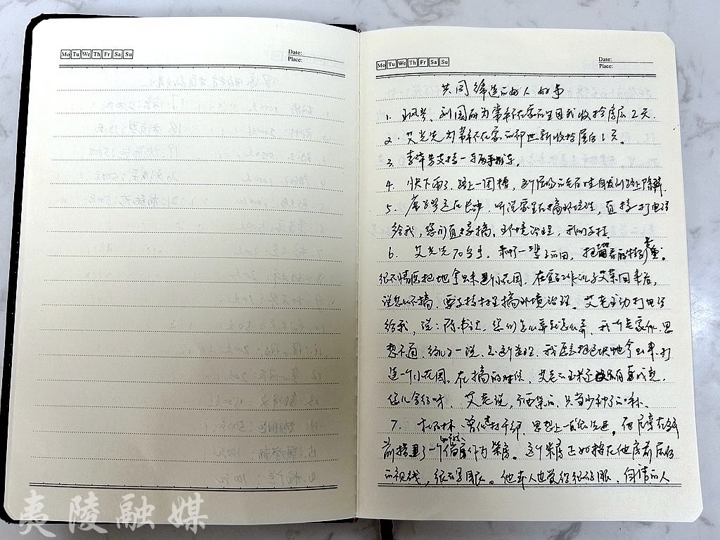 据陈志春介绍,村里家家户户都“让”了地,为了让大家的心更齐、力更足,大家还一起想了一句口号,“我来出份力,打扮我的家”。正是因为共同缔造的理念早已深入每一位村民的心中,陈志春才会充满情感地在纸上记下每一条“共同缔造的好人好事”。