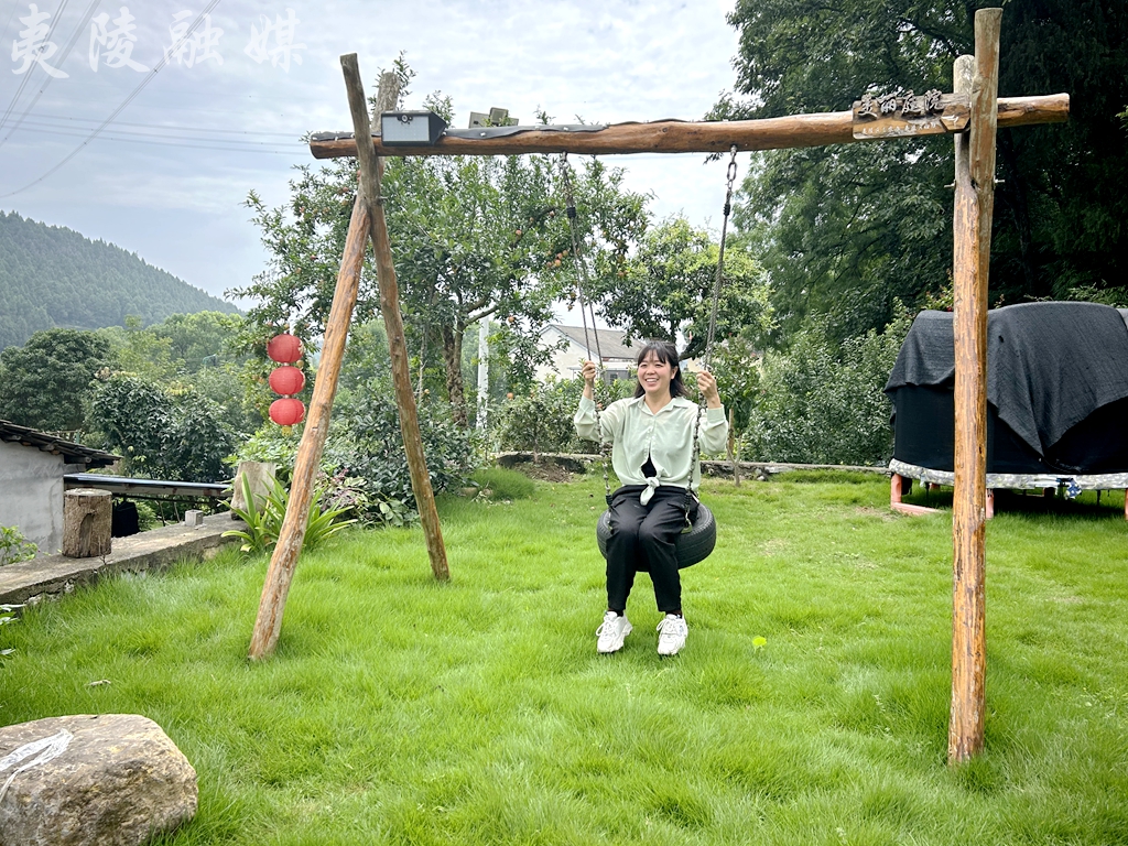 从罗家畈村村委会往上走,步步都是景,步步不同景。有石头步道、植物园林、葡萄藤蔓、木架秋千等等,沿路走去,绿树红花,一应俱全。