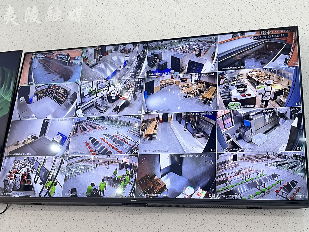 “为了保障学生饮食安全,学校食品加工过程全透明,后厨区域都有监控,学区分管人员实时监控,教育、市场监督部门同步监控,可随时查询备餐间、烹饪间的工作情况。”区实验小学副校长黄蓉说道。