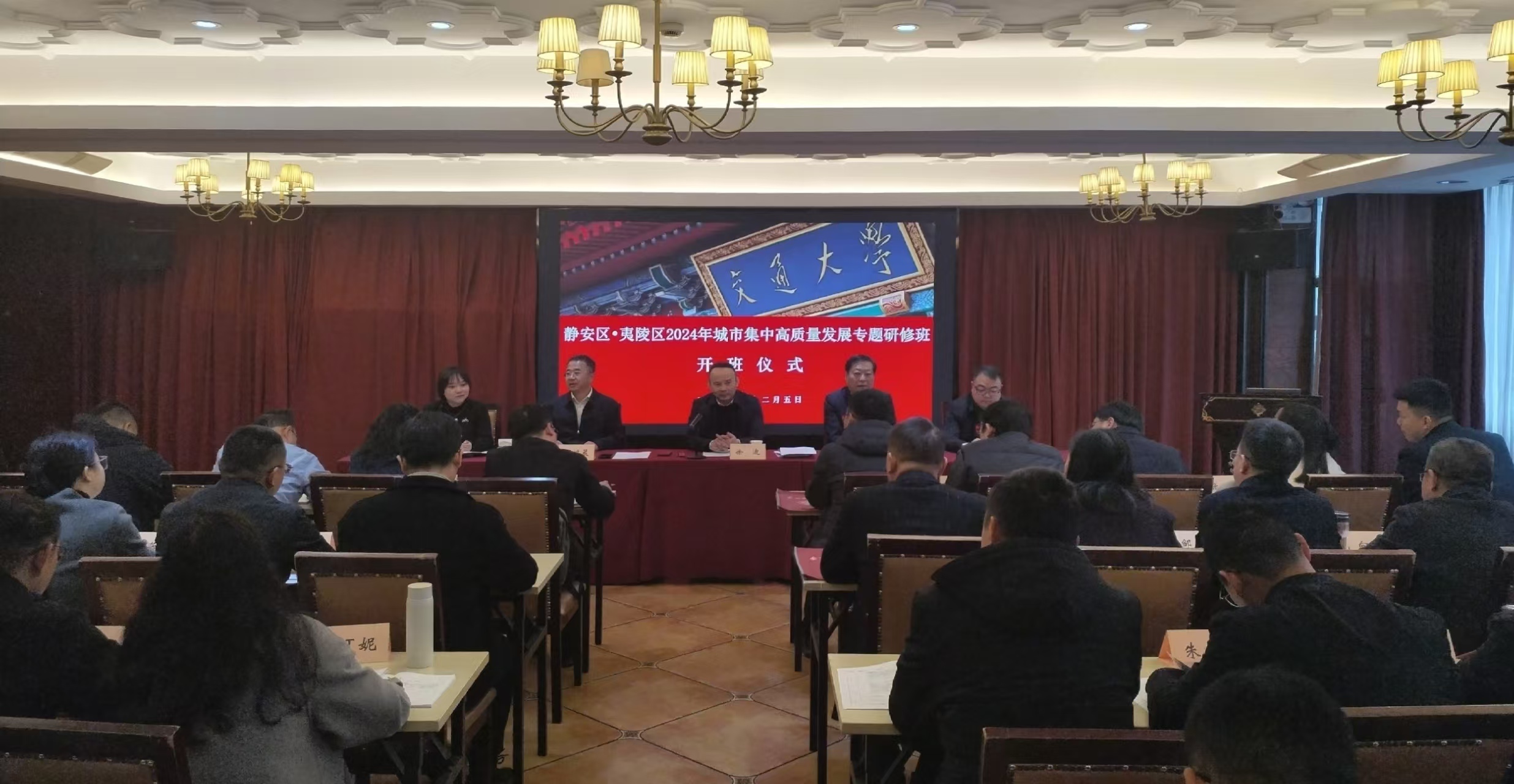 12月5日,夷陵区城市集中高质量发展专题研修班在上海开班,上海交通大学教育集团干部教育研究院副院长、教授李绿涛,夷陵区委副书记徐迪、副区长文鸿晨出席开班仪式。