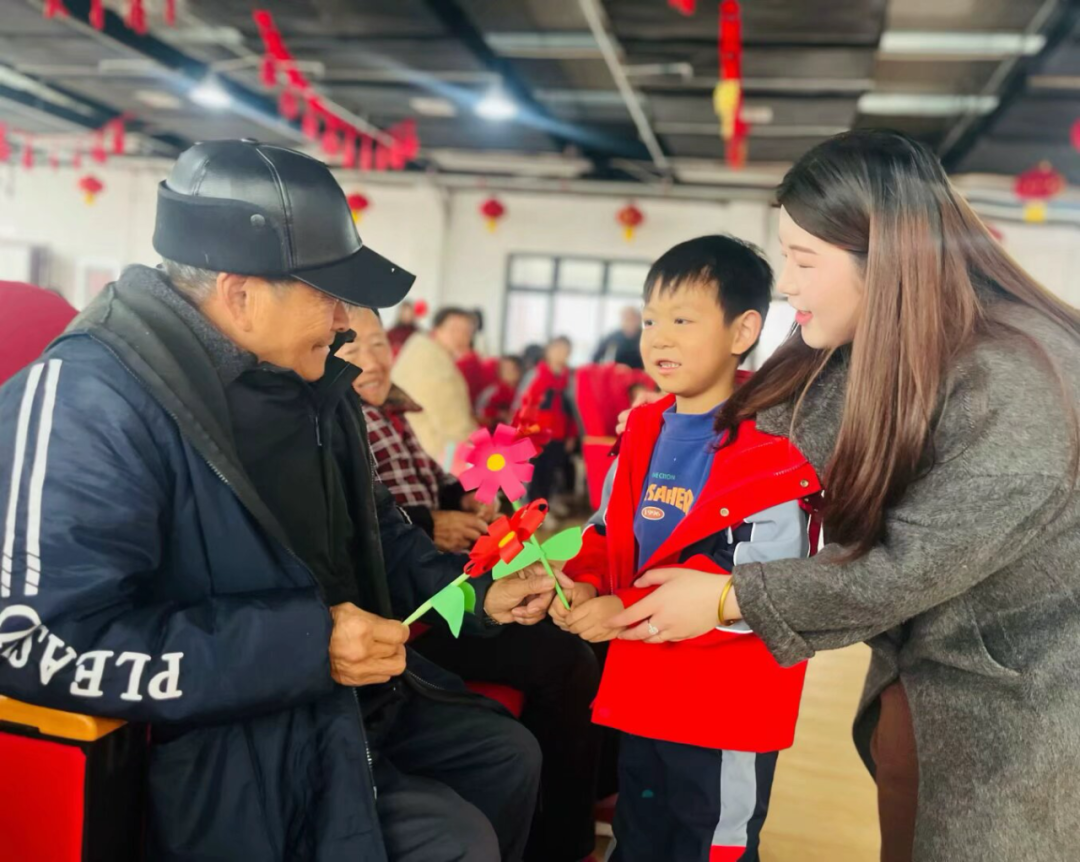 活动中,孩子们用稚嫩的童声向老人们送上“爷爷好,奶奶好”的暖心问候,拉开了温情序幕。在老师的带领下,幼儿表演手势舞《中华孝道》,以童真舞姿传递孝老敬亲的传统美德。随后,孩子们将自己亲手制作的作品《送你一朵小红花》赠送给老人,表达了对爷爷奶奶们的美好祝愿。