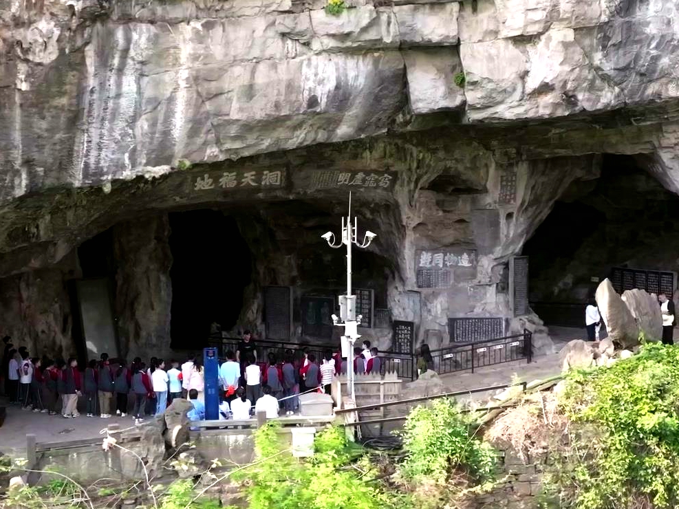“夷陵峡口明月夜,此处逢君是偶然。这句诗是当年白居易游三游洞的时候写下的。”在三游洞景区的摩崖石刻下,夷陵区诗词协会主席林文楷正在为游客讲述白居易等文学巨匠与三游洞的不解之缘,生动的讲解让学生们听得入了神。