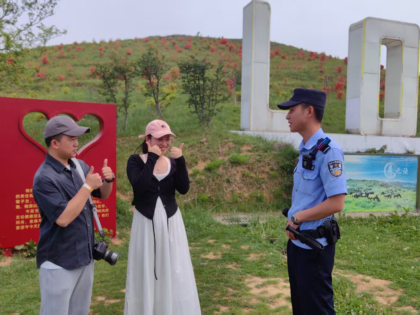 在游客服务中心、停车场等区域,民警通过发放宣传手册、现场讲解等方式,提醒游客注意个人财物安全,谨防电信诈骗。面对游客的紧急求助,执勤民警快速反应,依托景区联勤警务站,联动工作人员高效处置。此外,景区内设置的便民服务点还提供热水、急救药品、路线指引等贴心服务,受到游客广泛赞誉。