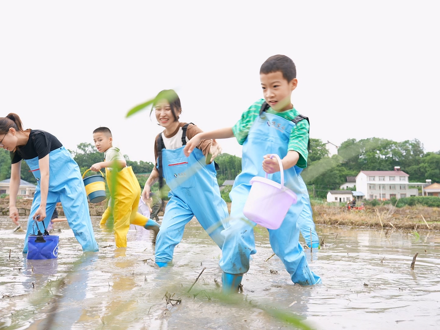 活动高潮非“稻田摸鱼大作战”莫属!随着鱼儿和泥鳅被放入泥塘,孩子们欢呼着冲入其中。泥水飞溅,小手在浑水中急切摸索,惊呼与欢笑此起彼伏。“我抓到啦!滑溜溜的!”杨潇淳小朋友兴奋地将手伸进泥田里抓泥鳅,脸上糊满泥巴却笑得灿烂,很快成了水田里最快乐的“小泥猴”。孩子们在稻田里翻腾的不只是鱼,更是无拘无束的童年野趣。
