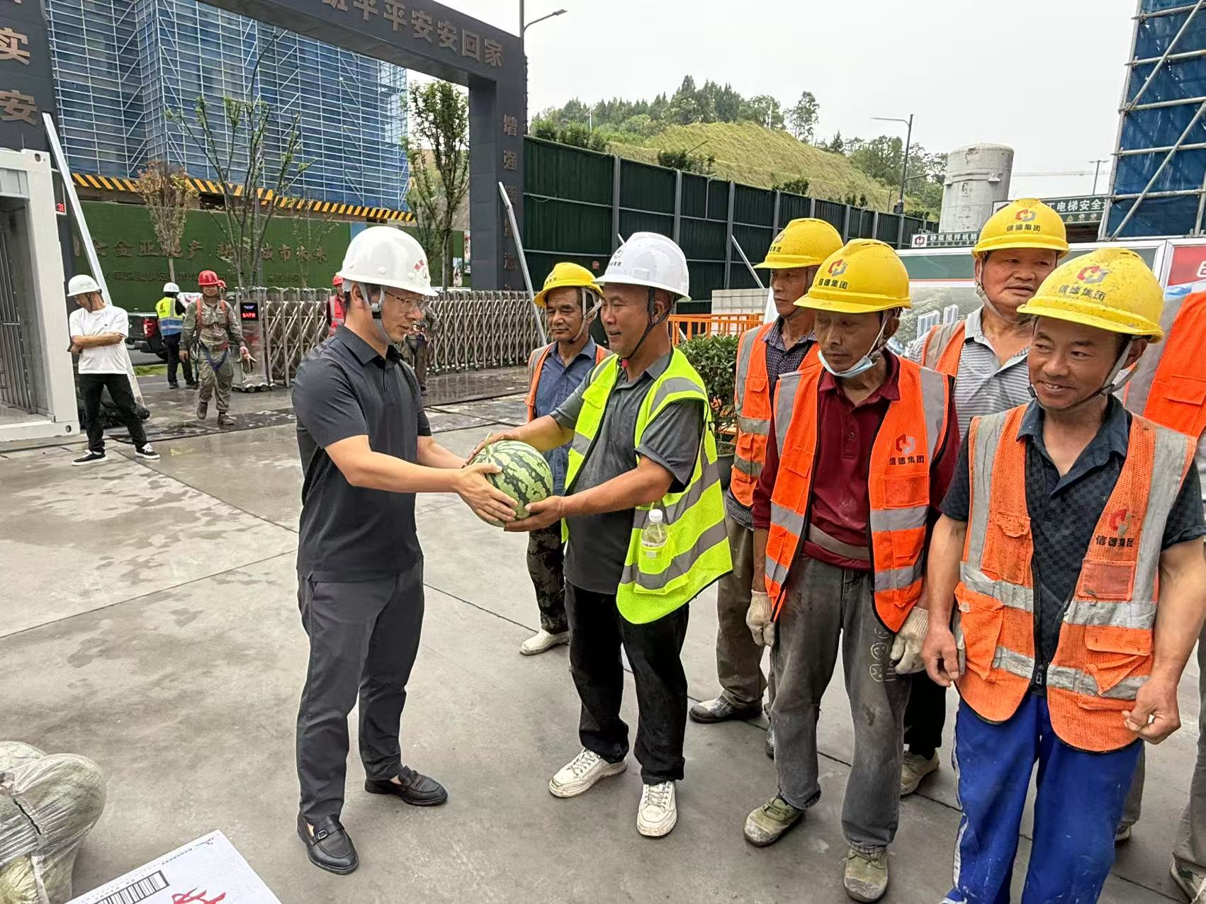 “天气这么热,大家辛苦了!”“一定要注意防暑降温啊!”慰问组每到一处,都与工人们亲切交谈,详细了解他们的作业环境和生活情况。当清凉解渴的西瓜和矿泉水送到工人们手中时,一张张被太阳晒得黝黑的脸上绽放出灿烂的笑容。“这些防暑物资来得太及时了!”“感谢领导们的关心,天气再热我们也要把工程干好!”工人们朴实的话语中透露着感动与干劲。