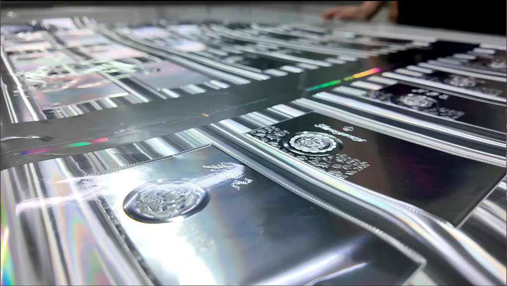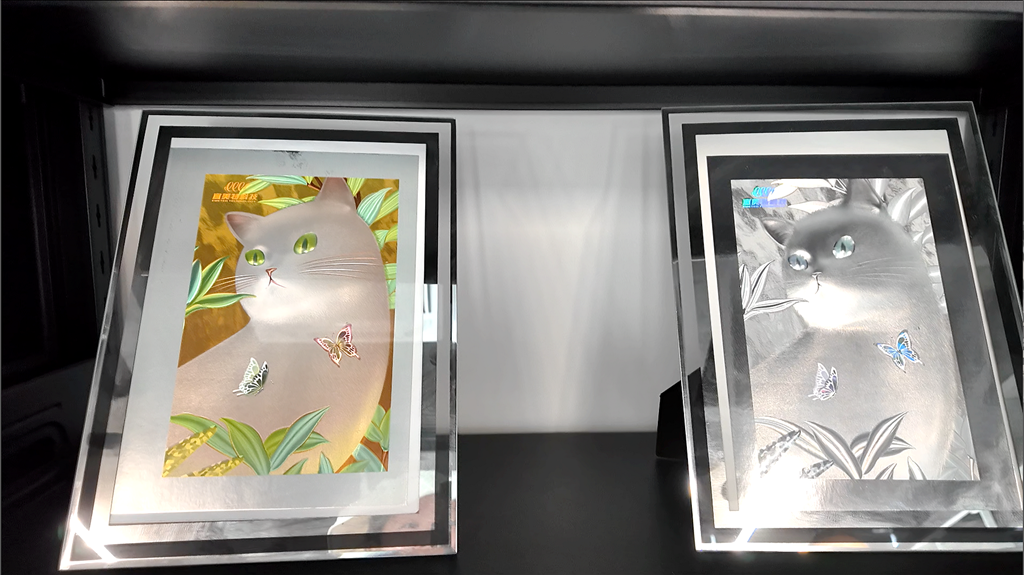 据生产部副经理宋方明透露,区别于传统防伪技术,光刻技术下生成的图案,视觉效果从2D进阶至3D,质感更丰富、动态更细腻、色彩更明艳,同时兼具动态防伪,安全性更高。