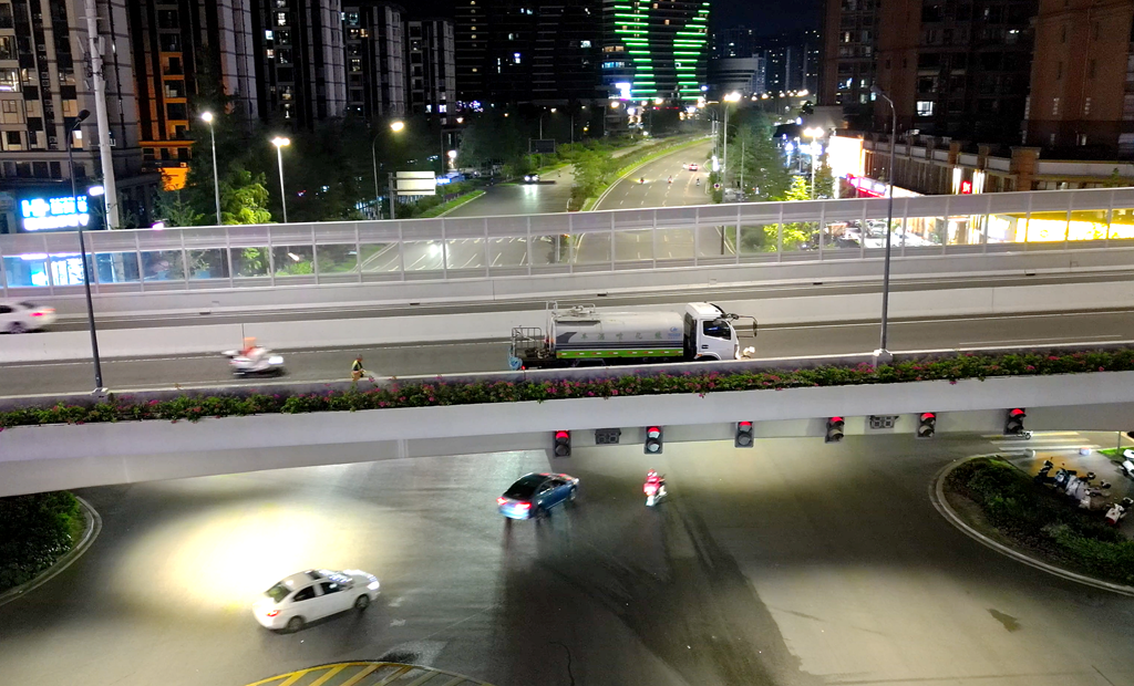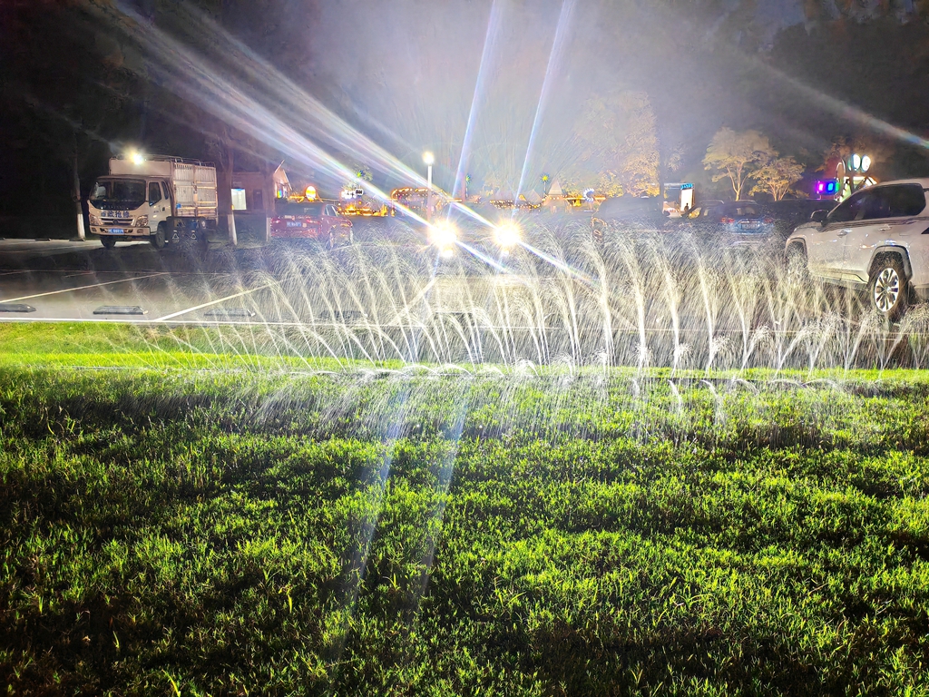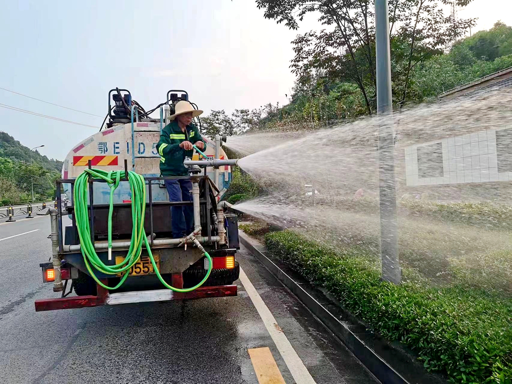 针对高温时段浇水易灼伤植物、水分蒸发快等难题,绿化养护工人调整作业时间,采取“人歇机不歇”的轮班制错峰浇灌,将主要浇水作业集中在清晨6时至10时和下午7时至夜间12时这两个时段进行,避开正午时段,不仅保护作业人员高温防暑安全,还提高了植物吸收水分的效率,实现科学用水、节约用水。