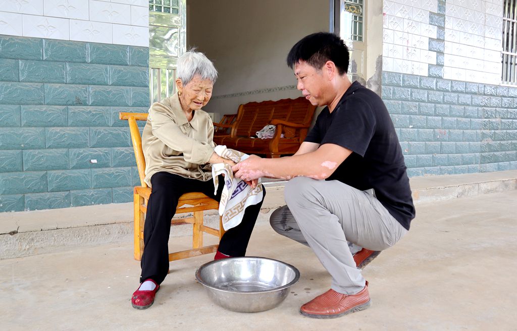 李其权端来洗脸水轻轻地为岳母洗脸擦手,杨泽英在一旁打扫着卫生,一家人时常坐在院子里闲聊,这个曾经饱经风霜的家庭,在李其权28年的守护下,早已被温暖和幸福填满。