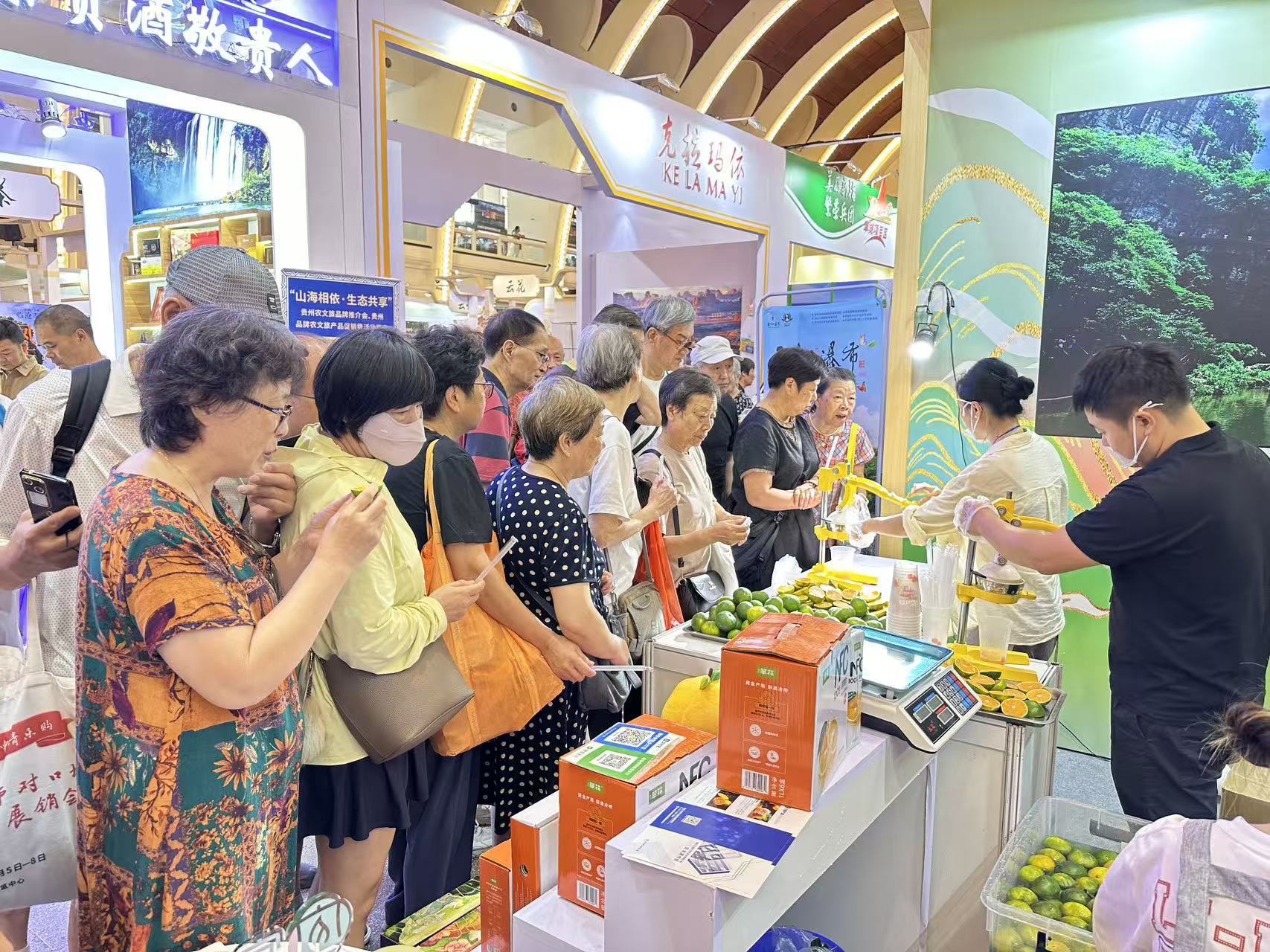 在夷陵专属展销区内,农特产品的“吸睛力”与“购买力”持续拉满。蜜桔的清甜多汁、茶叶的醇厚回甘、腊肉的地道风味,凭借出众的品质赢得上海市民的广泛青睐,展台前时常排起选购长队,购销两旺的火热氛围成为展销会上的一道亮丽风景线。上海市民程女士在品尝完鲜榨橘子汁后惊喜地说:“跟我想象中的口味不一样,很清甜,像小时候那种土生土长的橘子,明年我还要再来买。”