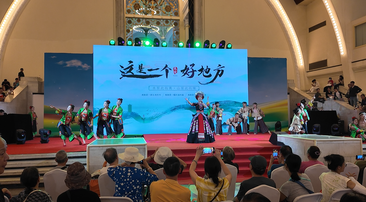 不仅如此,展销会还特别设置了夷陵文旅专场推介环节,夷陵歌舞团带来了《龙船调》《遇见夷陵》《水墨中的三峡》等10个精彩展演节目。演员们以极具地域特色的艺术表达,将峡江的壮美风光与夷陵的人文底蕴娓娓道来,让上海市民在展销会现场便能沉浸式“遇见”夷陵的峡江美景。“精彩的表演让我体味到了土家族的另一种风味”,上海市民安琪说,“而且看了VCR以后,让我更想去夷陵旅游了,想去亲眼看一看峡江风景。”