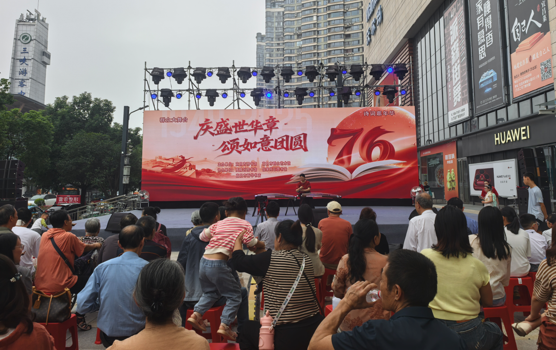 10月6日中秋佳节,宜昌市图书馆联合夷陵区图书馆、伍家岗区图书馆、宜昌新华书店,在伍家岗万达广场举办“庆盛世华章 颂如意团圆”诗词嘉年华活动。活动采用“表演+市集”的沉浸式体验模式,让市民在轻松愉快的氛围中感受中华诗词的独特魅力。