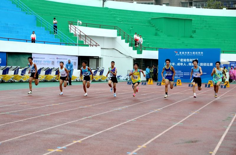 10月11日,宜昌市第七届运动会田径比赛在夷陵区体育场鸣枪开赛。来自全市39支代表队的810名运动员齐聚赛场,将在为期6天的赛程中展开激烈角逐。