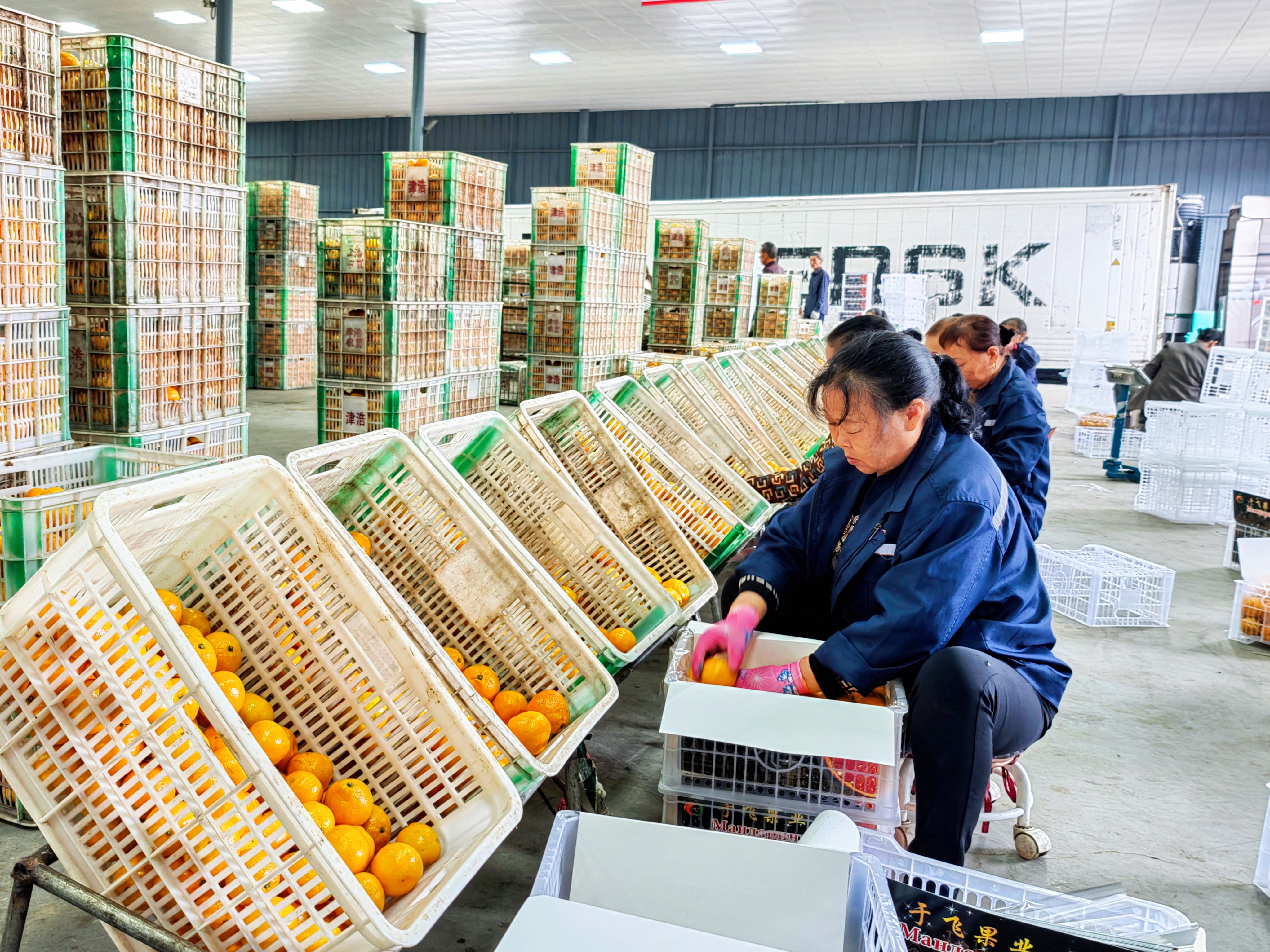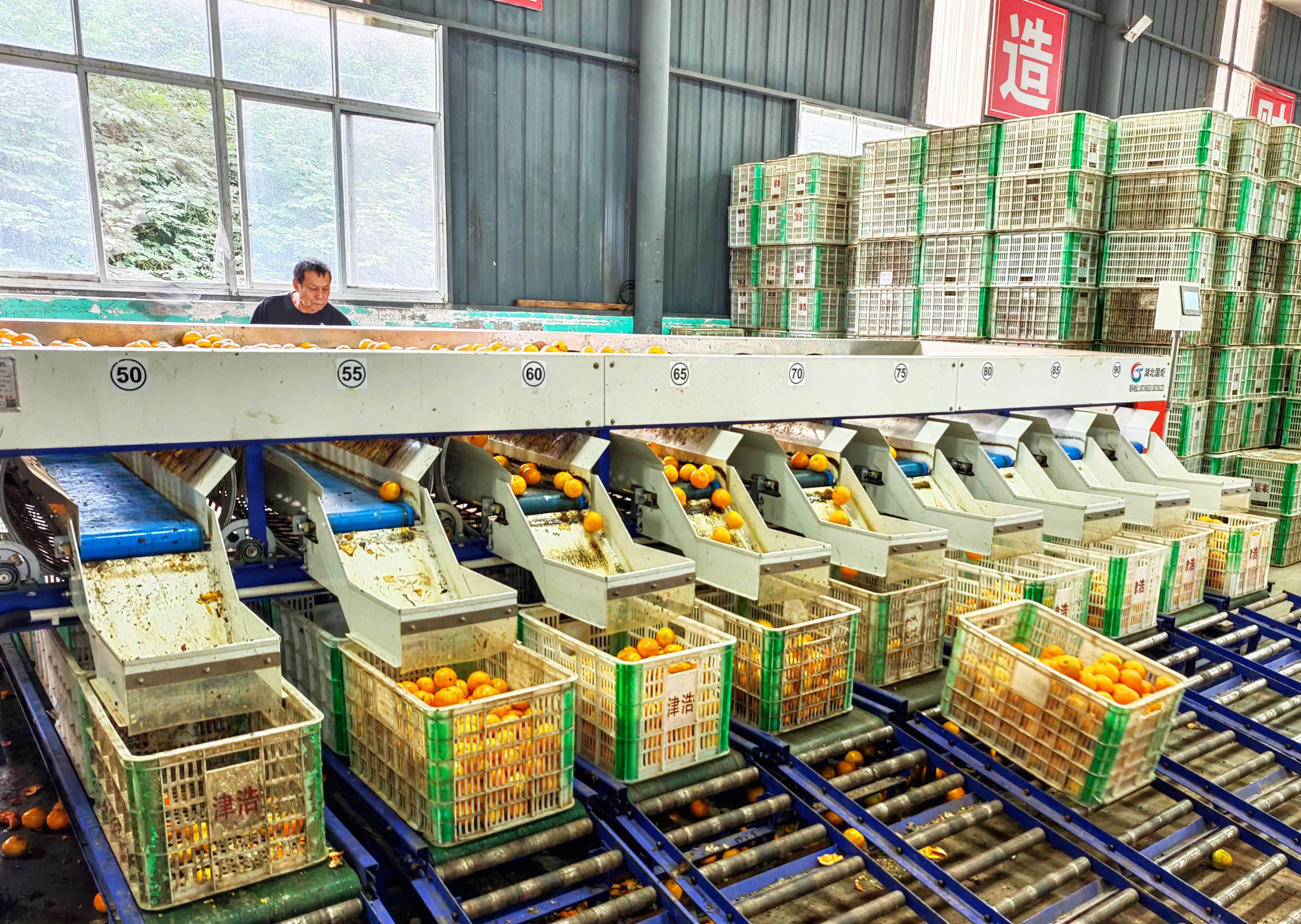 10月16日,记者走进津灏农贸加工车间,柑橘分拣清洗一体机持续运转,橙黄的宜昌蜜橘在传送带上依次“沐浴”“体检”,数十名工人围在打包台前,快速将分拣好的蜜橘装入纸箱,贴好出口标签的箱子很快堆成了小山,即将发往千里之外的俄罗斯。