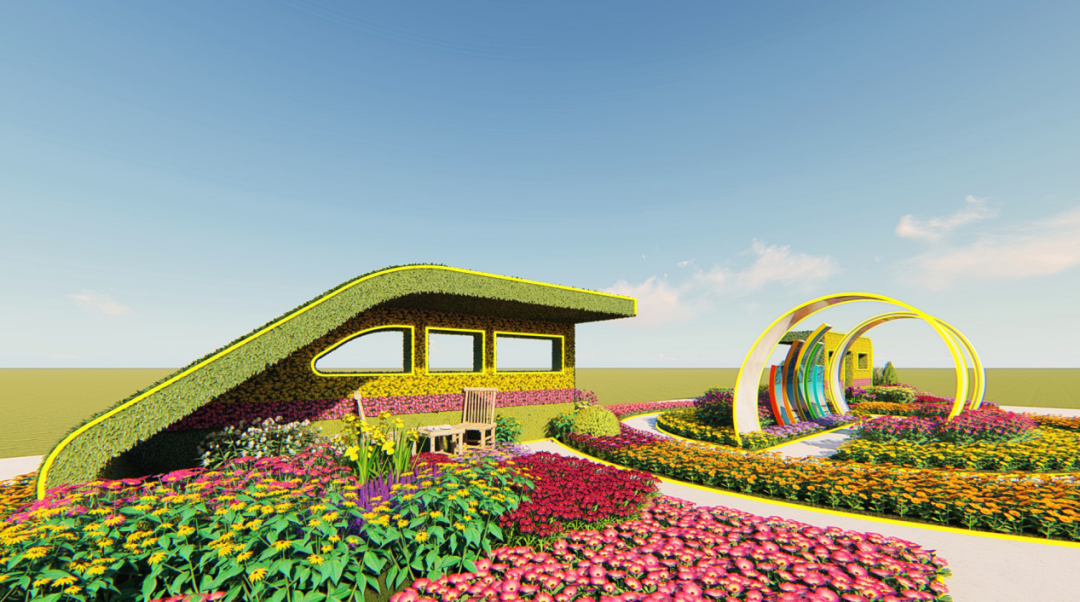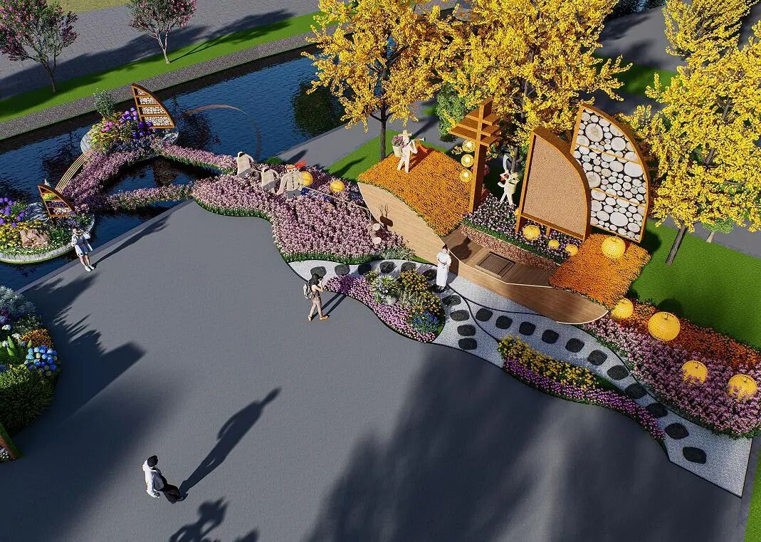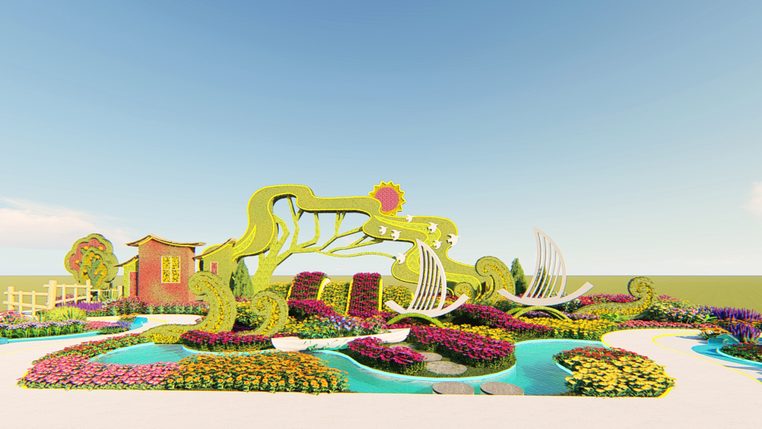 目前,该作品已进入布展阶段,整体以互动的形式呈现,主体为一列从“时光隧道”中呼啸驶出的高铁动车——隧道内壁,北站事迹的“记忆碎片”随光影闪现;列车飞驰,仿佛正载着城市发展的脉动向前。为呈现这一动态场景,夷陵区园林中心精选乒乓菊、球菊、独本菊为主材,搭配多种辅助花卉构建立体景观,通过光影与花卉的层次搭配,整座扎景宛如一幅幅凝固的城市发展剪影,串联起宜昌与高铁时代同频共振的奋斗故事。