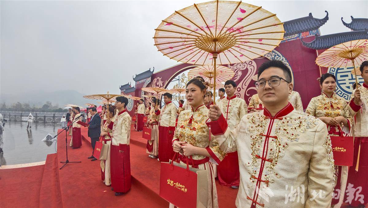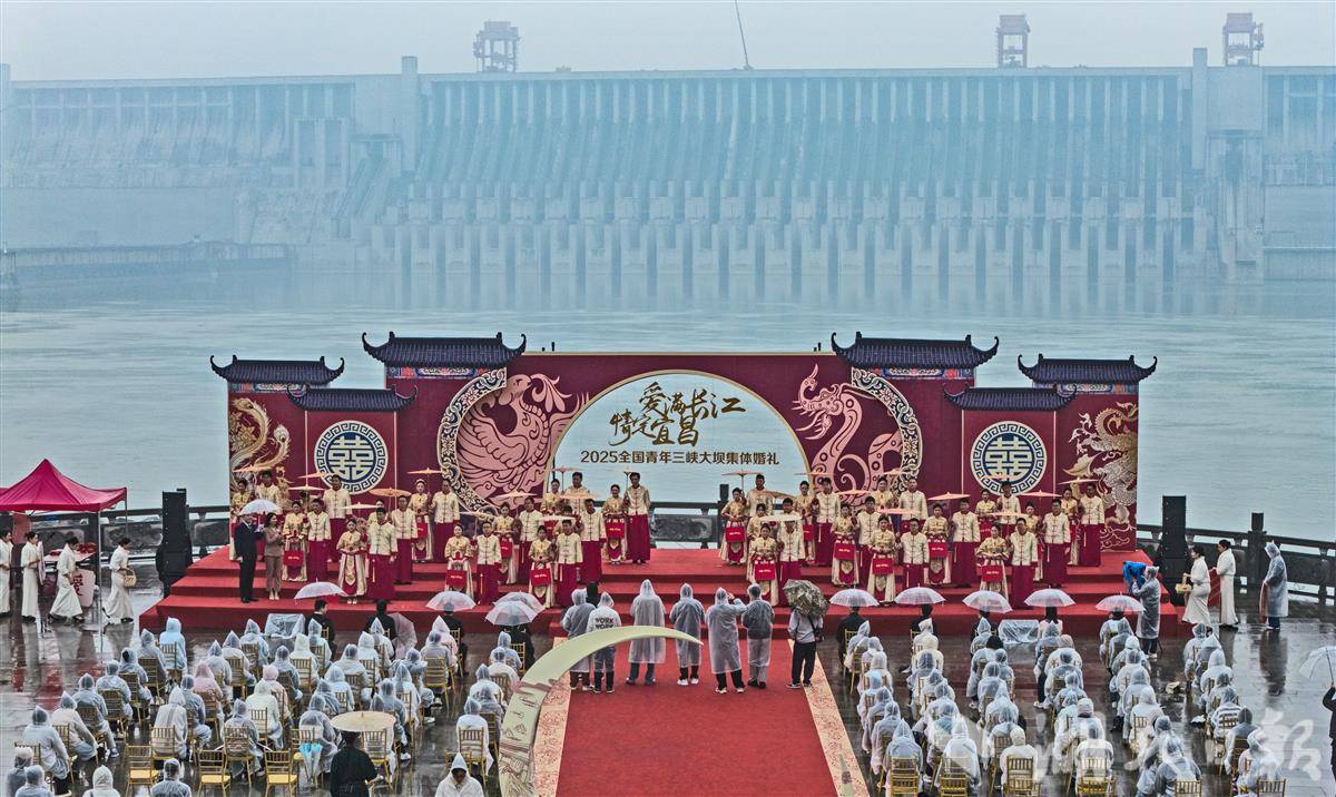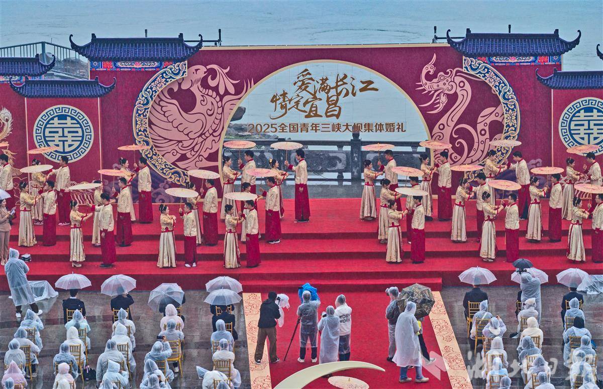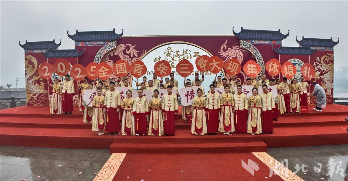 11月6日,“爱满长江 情定宜昌” 2025全国青年三峡大坝集体婚礼在三峡大坝截流纪念园举办。24对来自全国各地各行各业的新人,身着中式礼服完成三拜之礼、互换戒指、共饮柑橘合卺茶等传统仪程,携手走过三峡大坝水电工程模型桥梁。