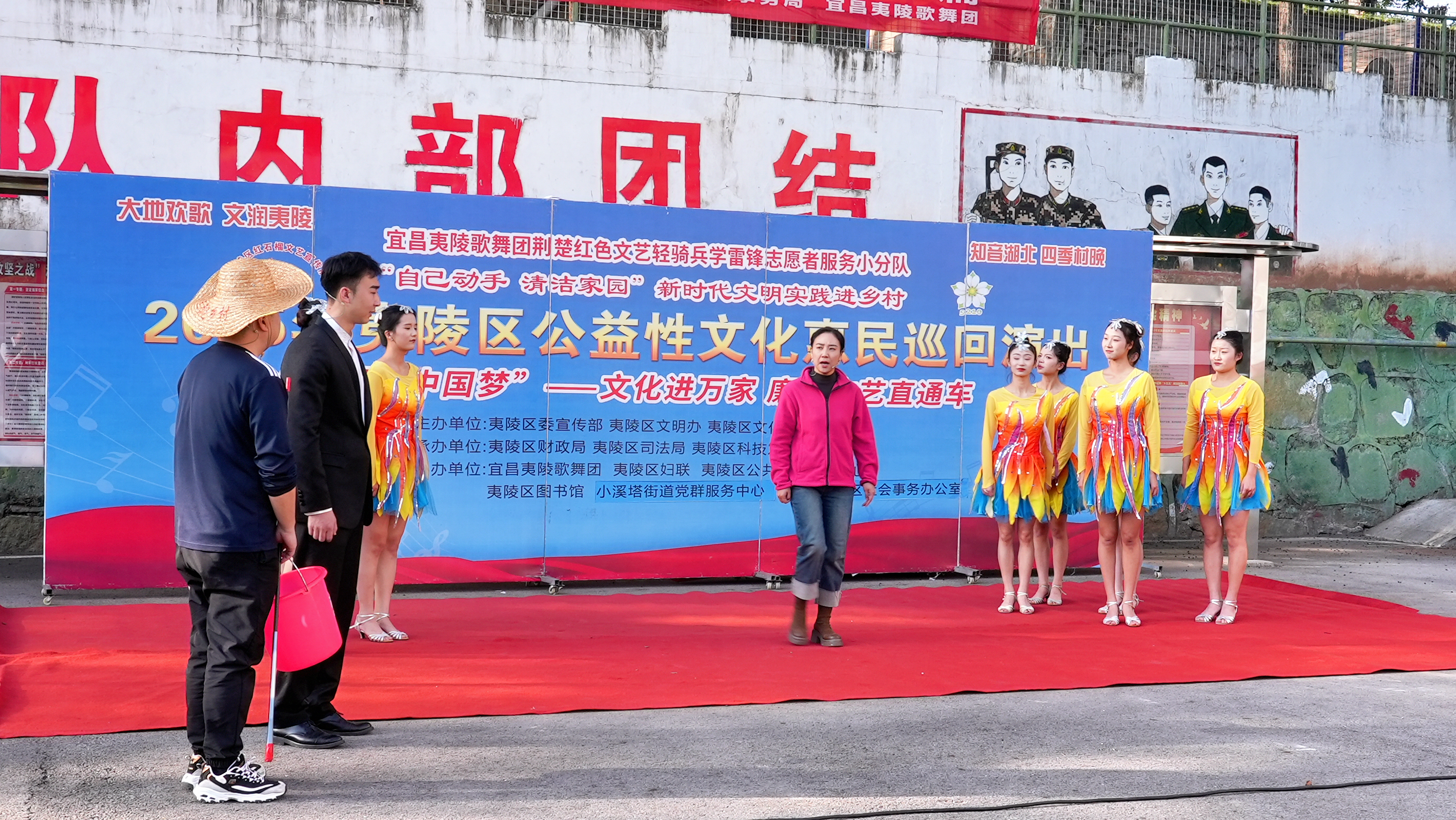 开场舞蹈《春到福来》拉开帷幕,欢快的节奏和优美的舞姿瞬间点燃全场气氛。随后,男声独唱《屈原魂》以激昂的旋律展现传统文化魅力,情景剧《老余的宝贝》通过幽默叙事反映司法部门普法的工作情景,引发阵阵笑声。女声独唱《山水夷陵》则以抒情风格展现地方风情,传递家国情怀。男声独唱《风云剑》和结尾节目《一起向美好》以高亢的歌声和集体表演,将活动推向高潮,彰显军民团结向上的精神风貌。
