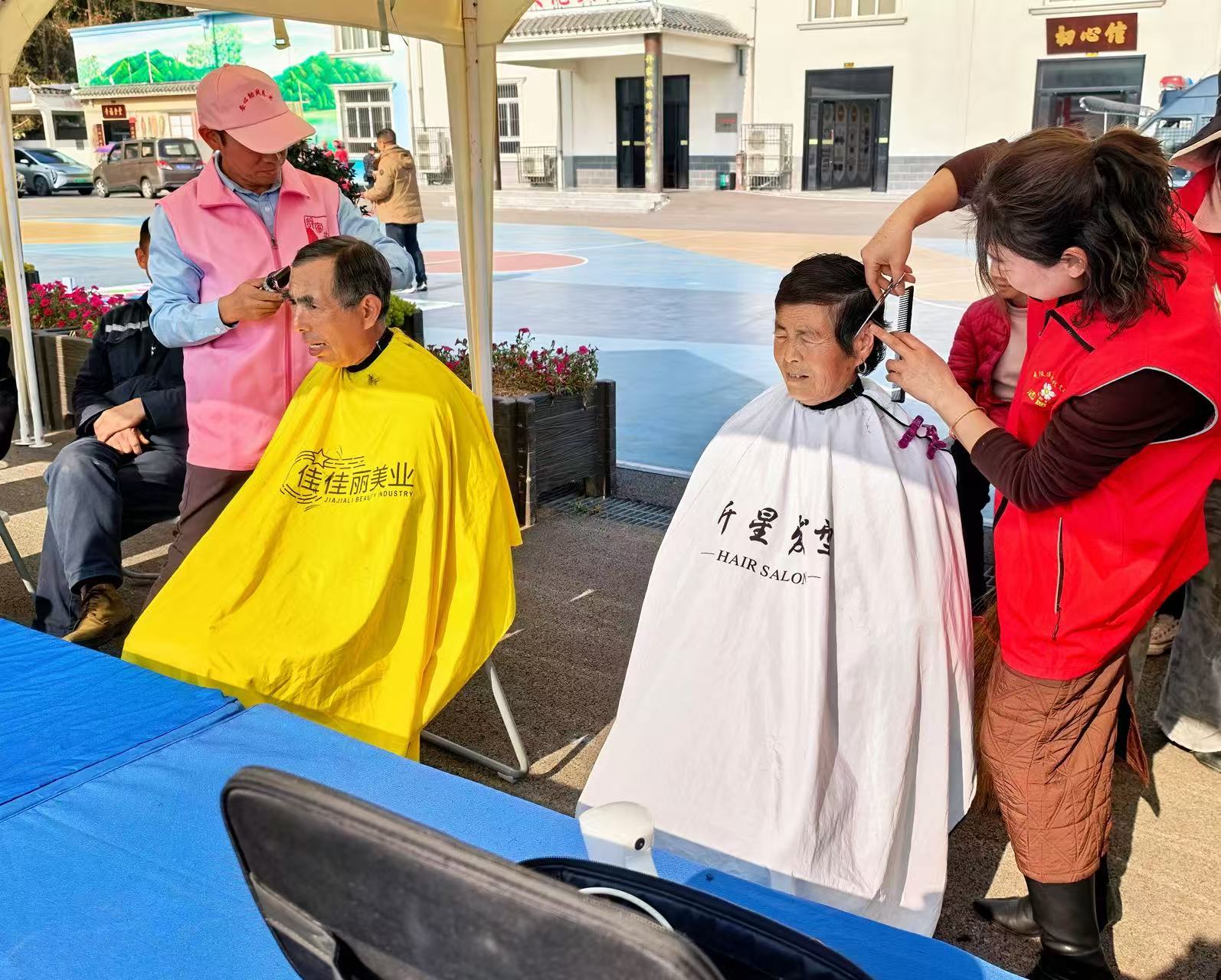 “节目演的都是咱身边事,听着亲切,道理也实在!”刚看完小品《中奖风波》的村民李大姐连连点赞。舞台旁的文明市集同样人气爆棚:爱心义诊摊位前,医护人员细致问诊;义剪服务区里,志愿者娴熟操作;义拍专区内,特色手工艺品传递文明价值,形成“文艺表演+便民服务”的多元文明实践场景。市集还设有移风易俗宣传展板,通过图文并茂的形式普及文明礼仪、倡导绿色生活,让村民在潜移默化中感受文明实践的温暖与力量。