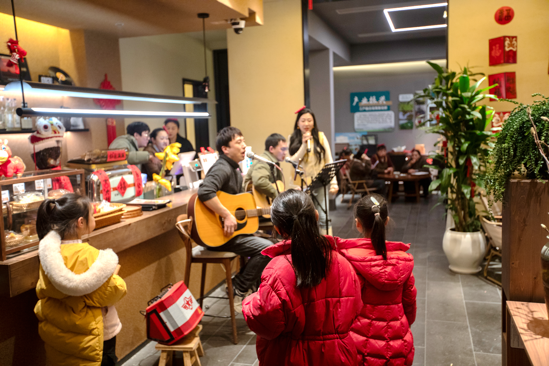 来自宜昌的游客高晗一家围坐在暖炉旁煮茶,脸上洋溢着幸福的笑容。高晗说:“我们特意关注了这一场活动,提前就邀请亲友来这里体验。之前在石屋的感觉挺好,来到咖啡厅跨年,又给自己带来了更多惊喜,刚好也可以趁着这个机会好好陪陪家人和朋友。”