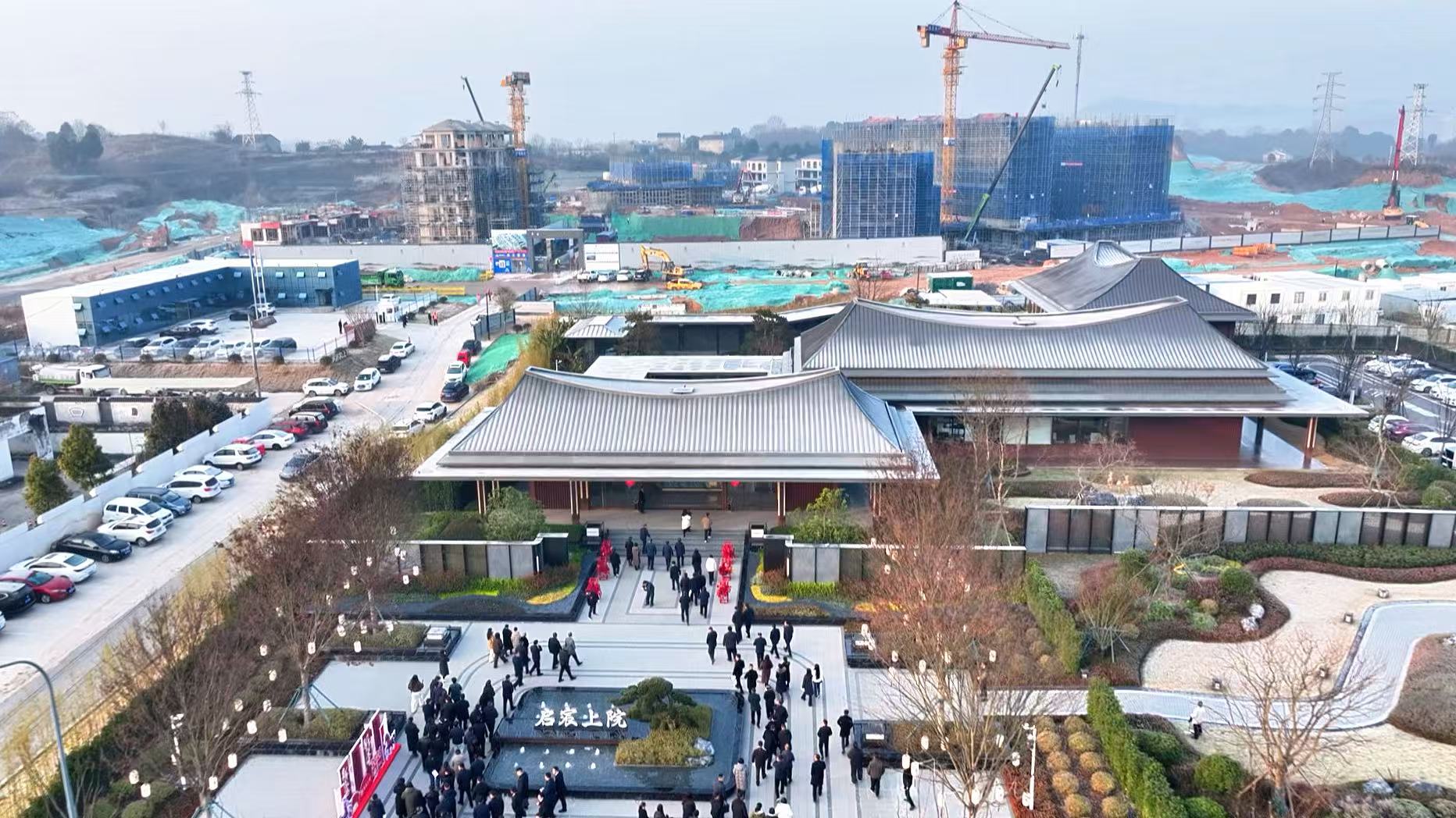 首站来到启宸上院项目建设现场,中央展示的沙盘格外引人注目。从社区配套、公共空间到智慧服务,项目全方位考量居民全龄友好、生活便捷与精神文化需求,无不透露着民生友好的生态底色。该项目位于宜昌市高铁新城片区绿色生态区,占地324亩,毗邻小鸦路、伍龙路等主干道,距离宜昌北站直线距离2.3公里,打造“一核、一带、一环、多组团”的高品质生态住区,建成后可提供高品质改善型住房381套。
