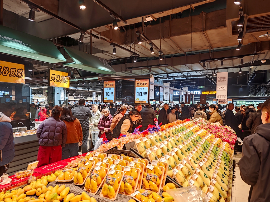 当天,超市准备了“单件特惠商品”“餐饮充值”“购物满额抽奖”等活动,进一步激发了市民的消费热情。