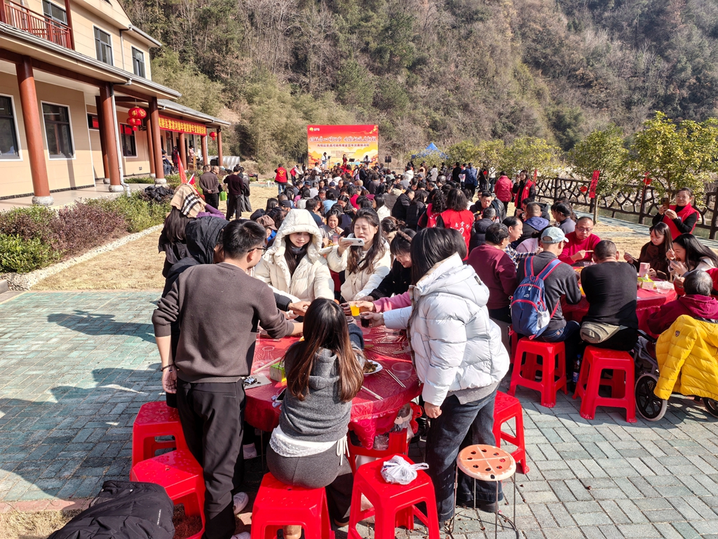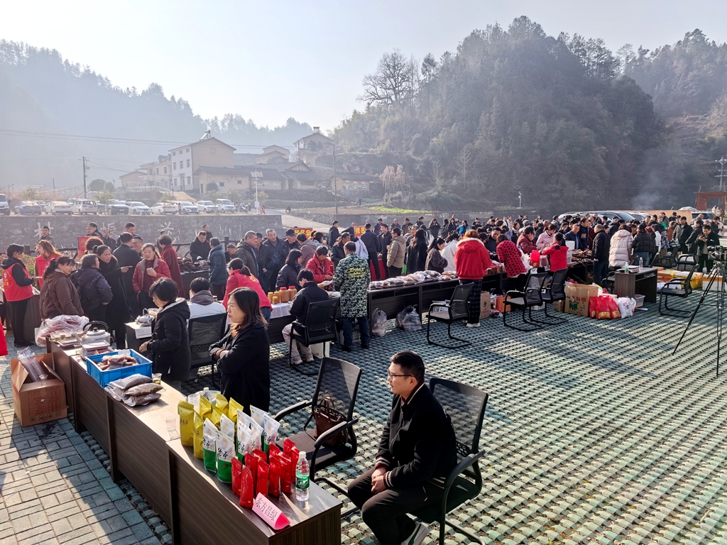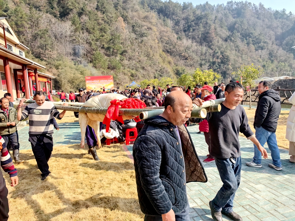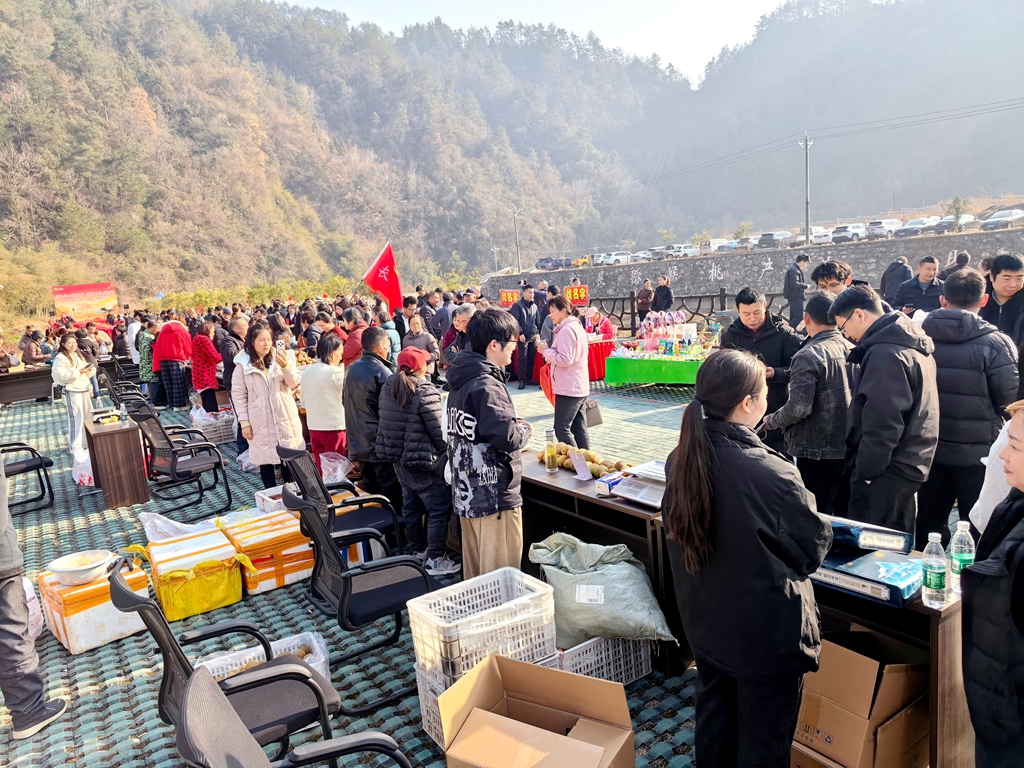 腊月年至,乡情愈浓。1月16日上午,夷陵区雾渡河镇龚家河村土碾坪猕猴桃园内张灯结彩,欢声笑语,“村社齐心辞旧岁 欢聚桃源启新程”雾渡河镇年猪宴暨年货展销活动在这里举行。