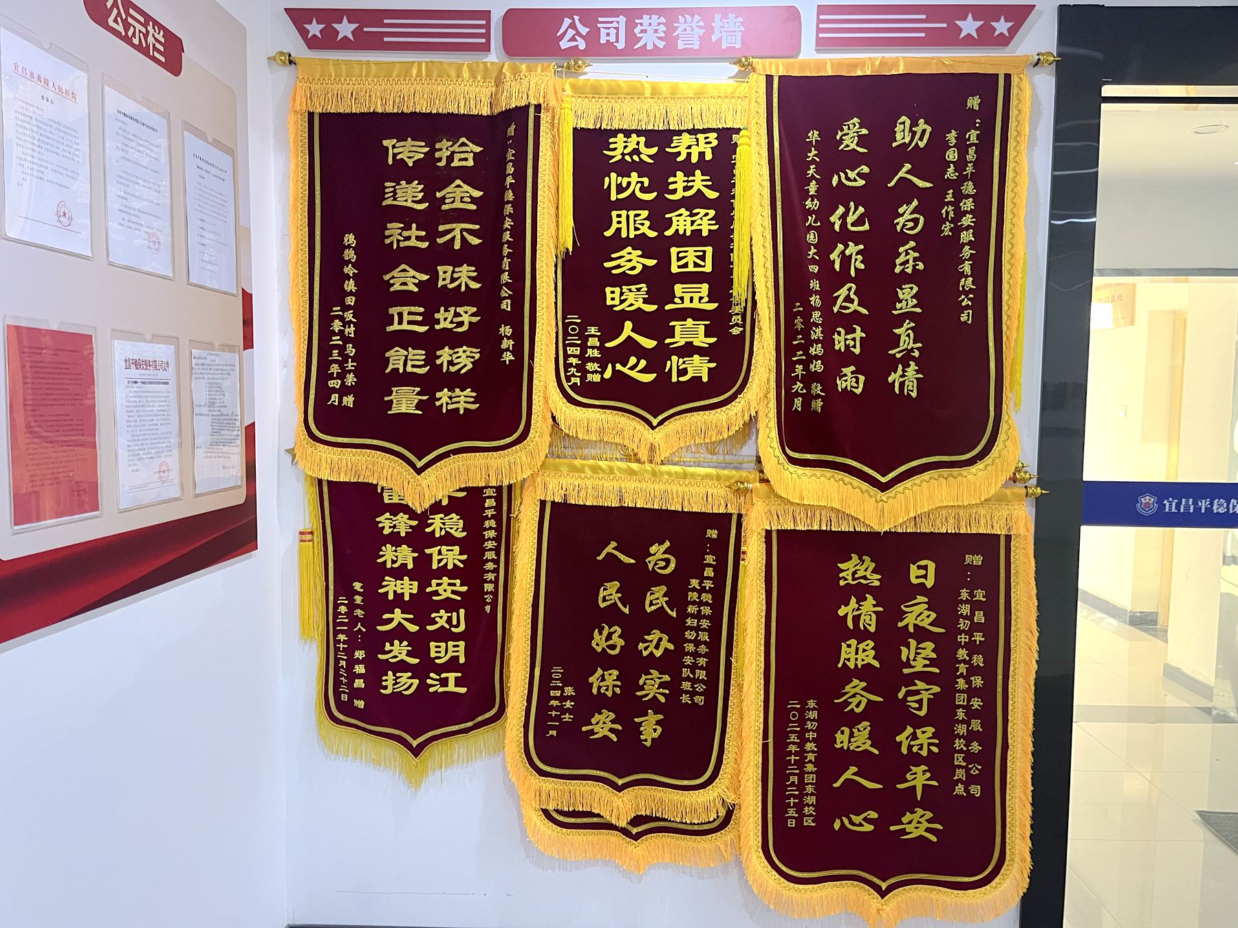 王新华的故事,只是刘先明暖心善举的一个缩影。如今,公司文化墙上挂满了“拾金不昧”“助人为乐”“人民好保安”等锦旗,每一面锦旗背后,都藏着一段温暖的故事,凝聚着社会各界对这支退役军人队伍的信赖与赞誉。