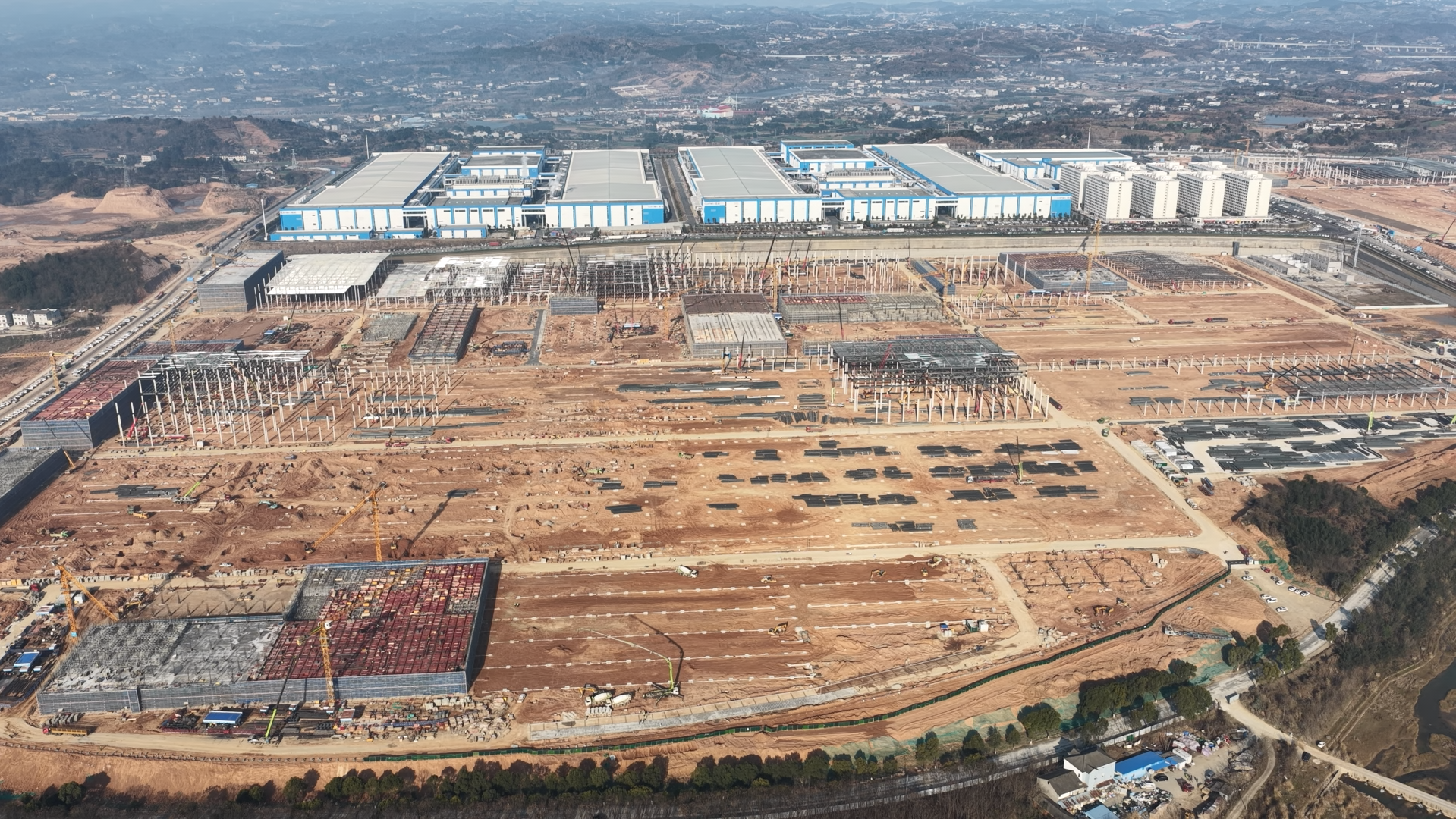 “目前我们2号地块5号电芯车间的预制柱已经全部吊装结束,下一步计划推进钢结构的吊装及6号、7号电芯车间的预制柱吊装,过程中穿插电芯车间的金刚砂地坪施工,全部人员加班加点赶在春节前完成主体结构的封顶。”宜昌楚能新能源创新科技有限公司土建工程师李言丰介绍道。据悉,该项目总投资220亿元,规划年产能80GWh,主要生产新一代动力电池、储能电池及PACK模组,建成投产后预计可实现年产值约220亿元,提供就业岗位6000个以上。