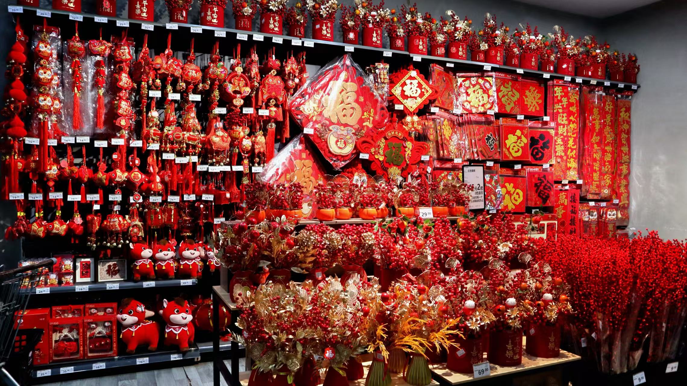 来到小溪塔雅斯超市,浓厚的新春氛围扑面而来。超市内新增的春饰区摆满了各式各样的灯笼、中国结与新春挂件,红色主题装饰将卖场装点得暖意融融。
