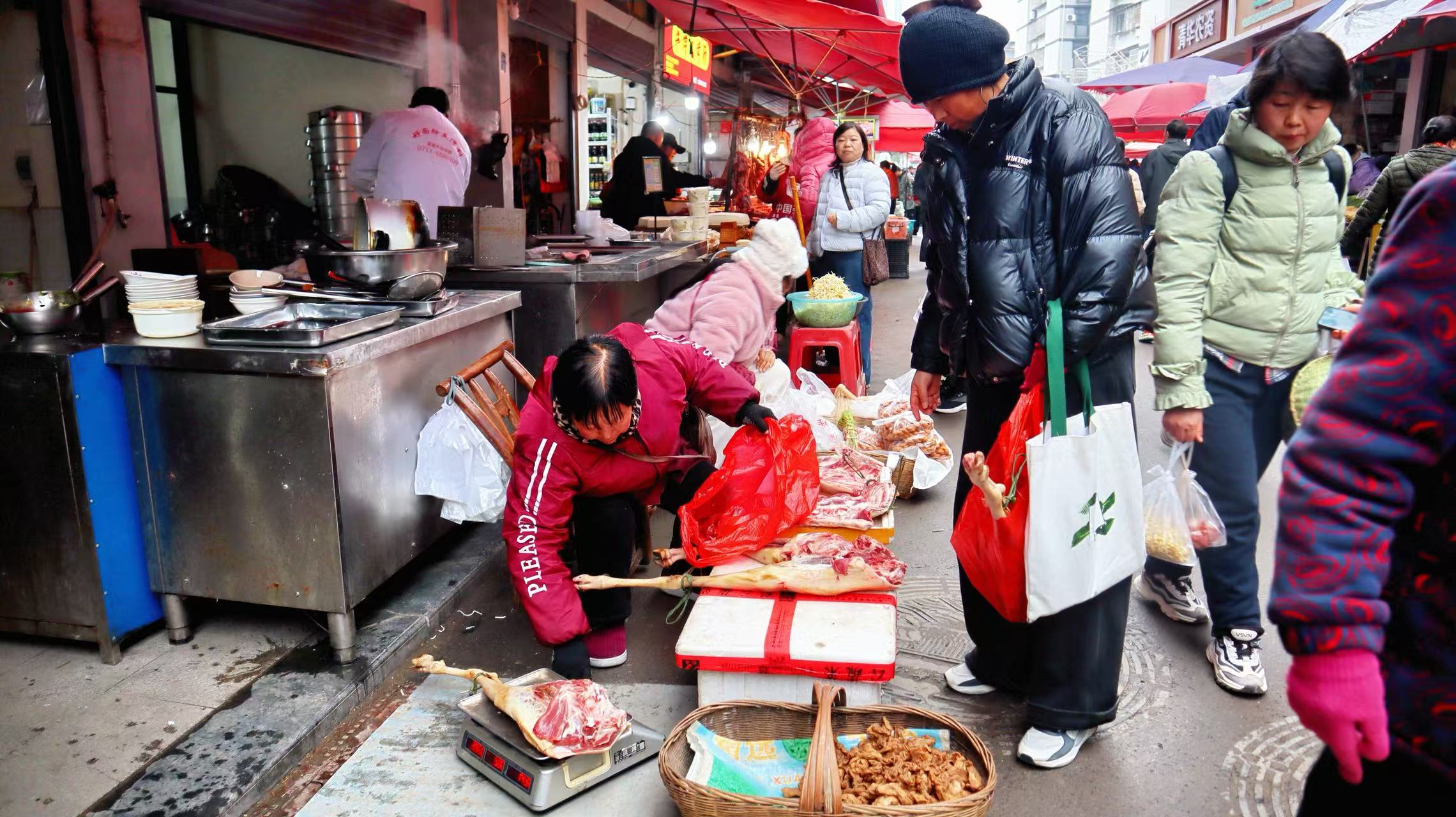 不远处的鲜肉摊位前,市民杜家新提着刚买的牛羊肉,满脸笑意:“要过年了,买些新鲜肉回家炖火锅,一家人热热闹闹才像样。”作为承载老夷陵人记忆的特色街区,这里不仅保留着物美价廉的农家食材,更以升级后的整洁环境与便捷交通,成为市民采购年货的首选之地。