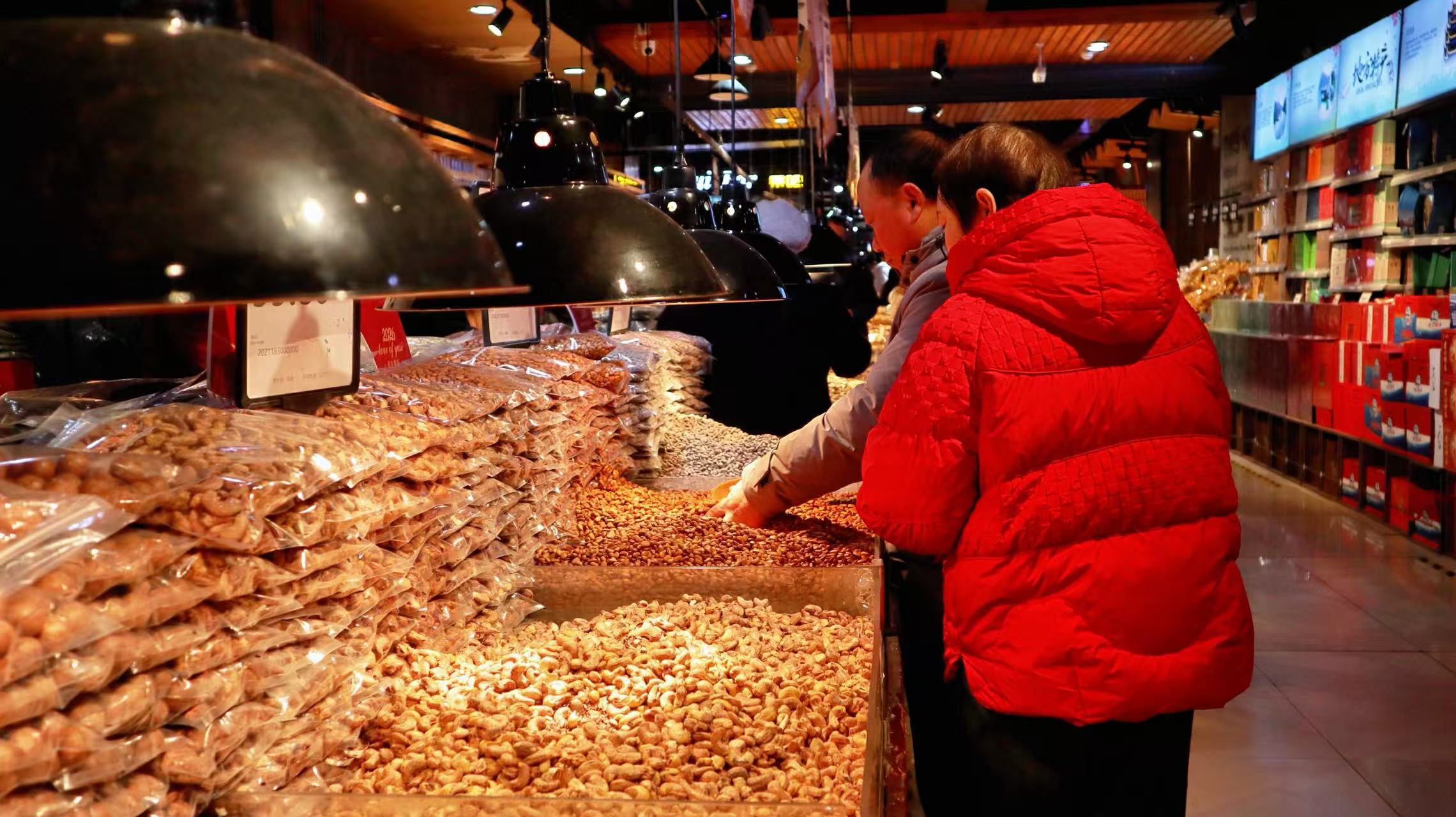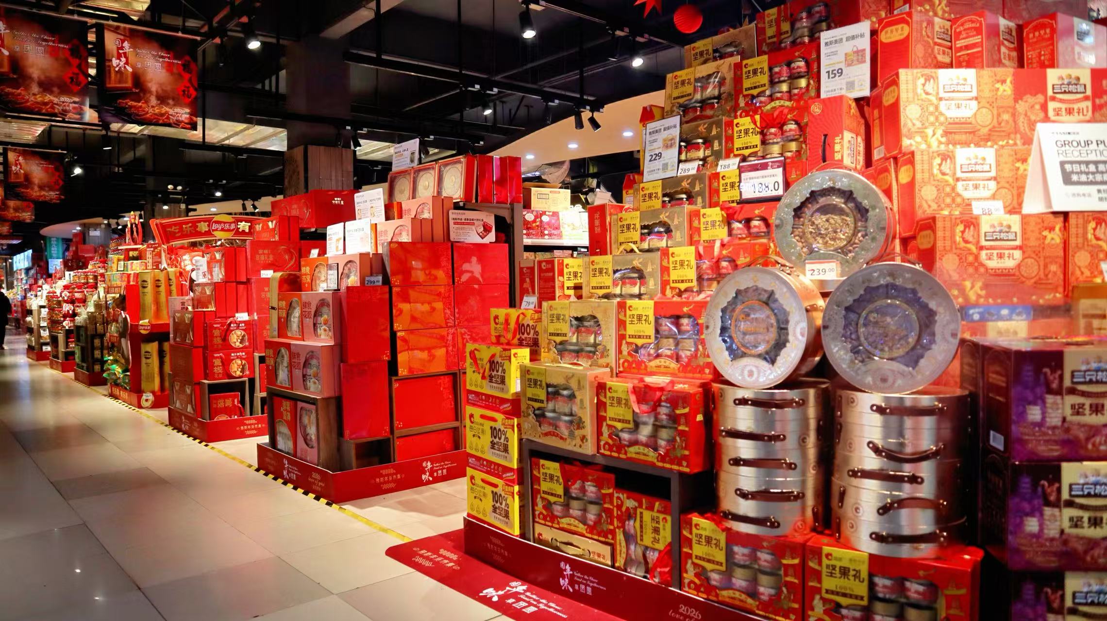 “春节即将到来,我们新增了春饰区,同时扩大了年货礼盒的销售区域,包含水果、零食、酒水等,为广大顾客走亲访友、欢度佳节提供丰富选择。”超市店长邹绍丽介绍道。