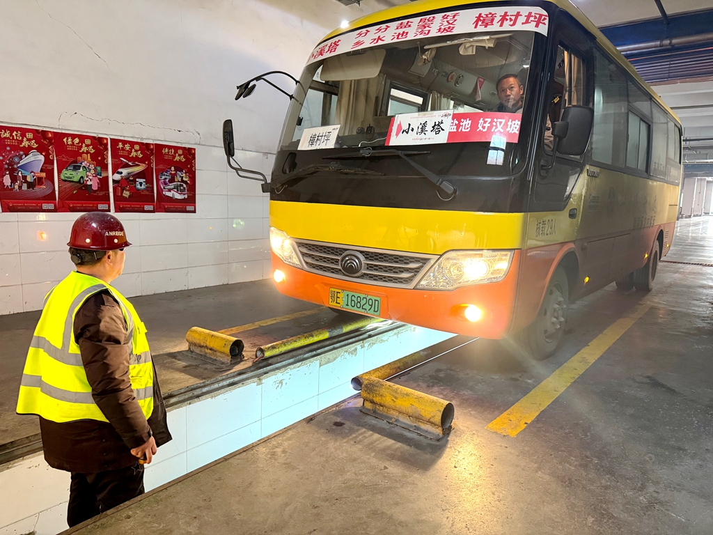 上午9时,客运站内秩序井然,安检严格执行“逢包必检、逢液必查”。工作人员通过查现场、核台账、看监控、问流程等方式,对“三不进站、六不出站”制度落实情况进行逐项核验。在车辆安检区,检查人员对客运车辆的灯光、刹车、轮胎逐一“体检”,并核查车辆上的灭火器、安全锤、安全带等安全设施设备的配备情况,坚决杜绝“带病车辆”上路营运。
