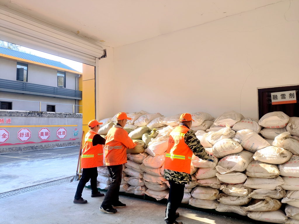 公路保畅方面,已储备融雪剂280吨、铁锹5000把、十字镐5000把、各类安全警示设施1200余套,以及装载机、撒布机、推雪铲等多种设备41台,储备社会应急机械设备57台,并组建223人的应急队伍,随时应对公路突发事件及恶劣天气,全力保障道路交通安全畅通。