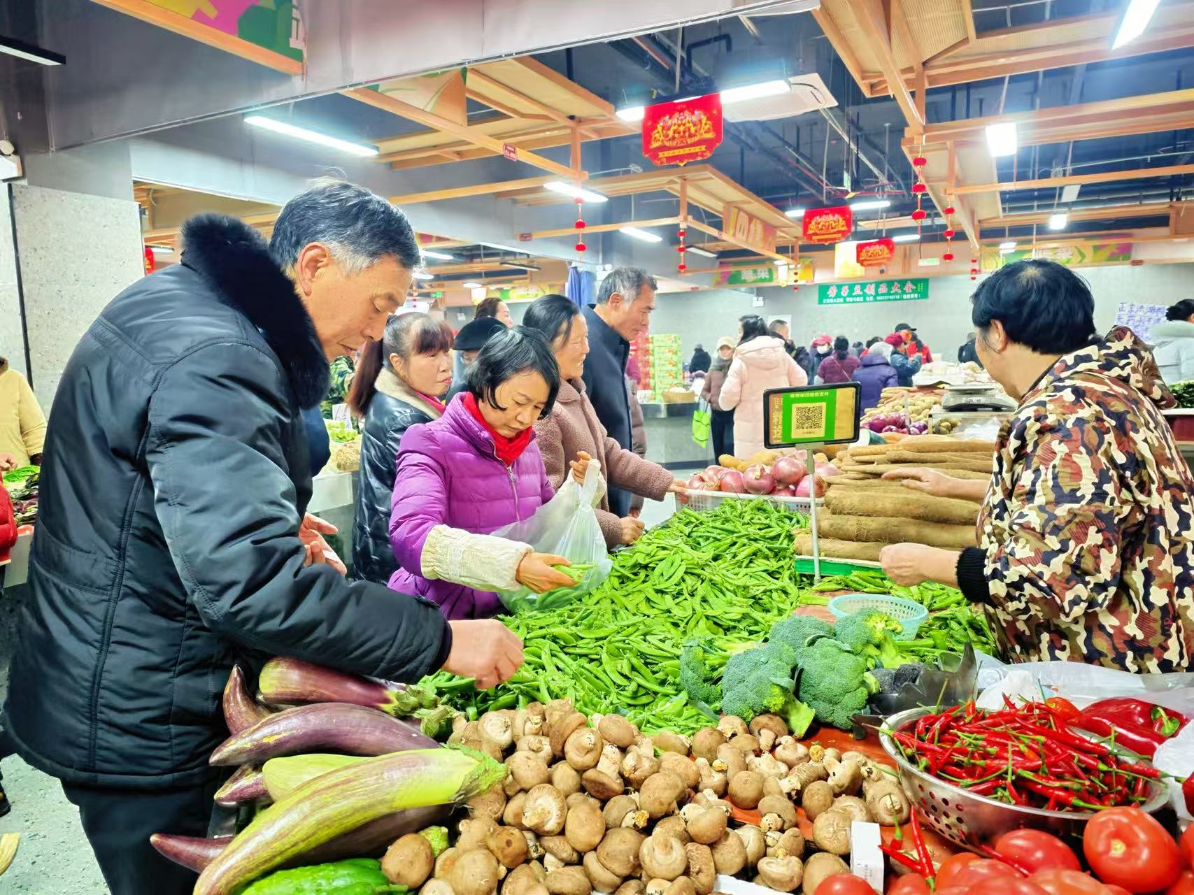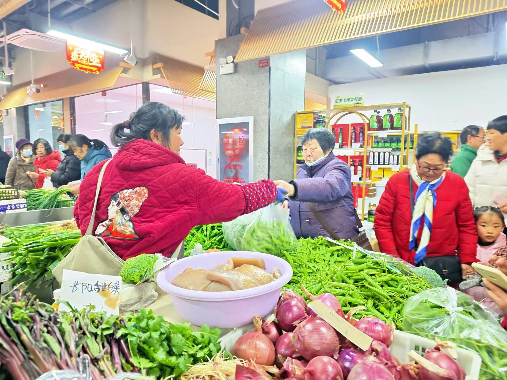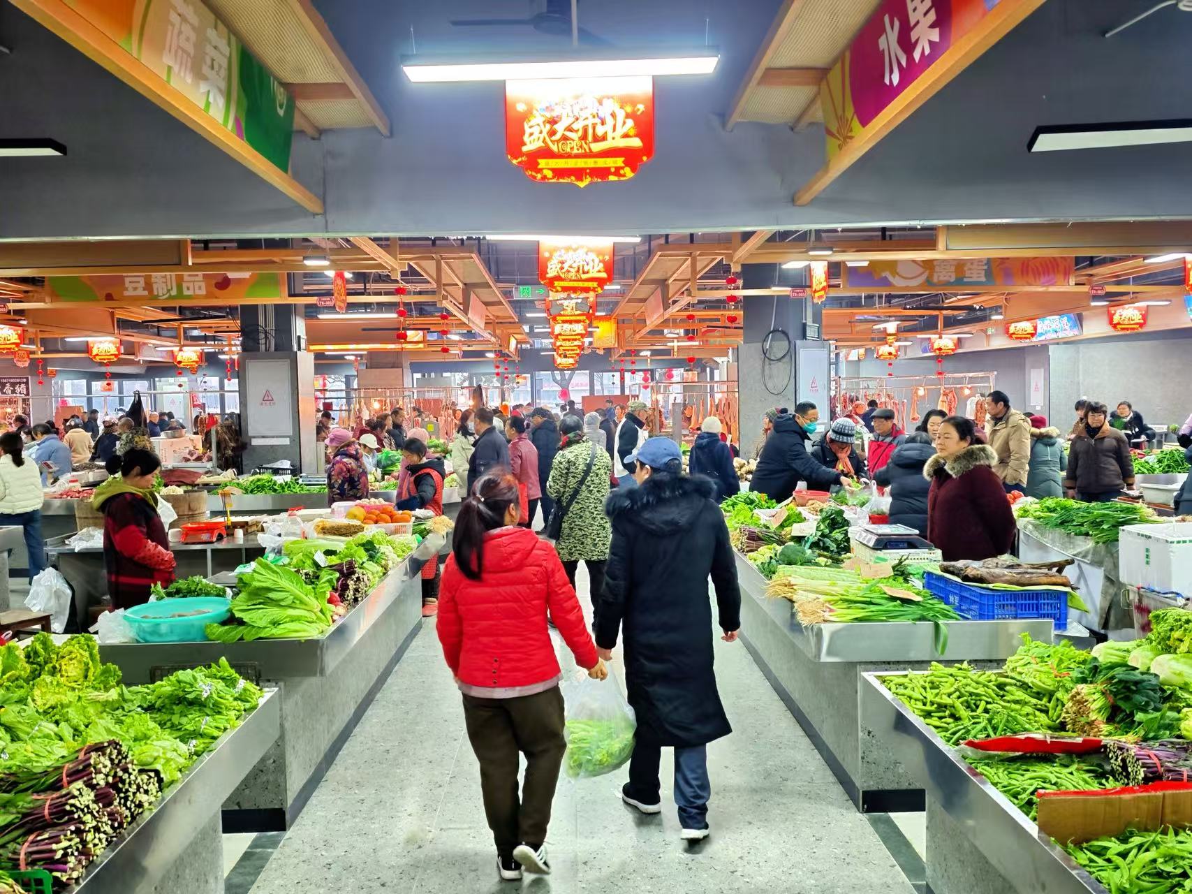 开业当天,邻里中心内人头攒动、熙熙攘攘,前来逛市场、选好物的市民络绎不绝。大家穿梭在整齐排列的标准化摊位间,认真挑选着新鲜的果蔬、生鲜等农副产品,摊主们热情地招呼着顾客,清脆的吆喝声、欢快的交谈声交织在一起,浓浓烟火气扑面而来。干净整洁的室内环境、规整有序的经营布局,与昔日露天摆摊、杂乱拥挤的场景形成鲜明对比,市民们一边挑选商品,一边赞叹着新市场的变化,脸上满是喜悦。