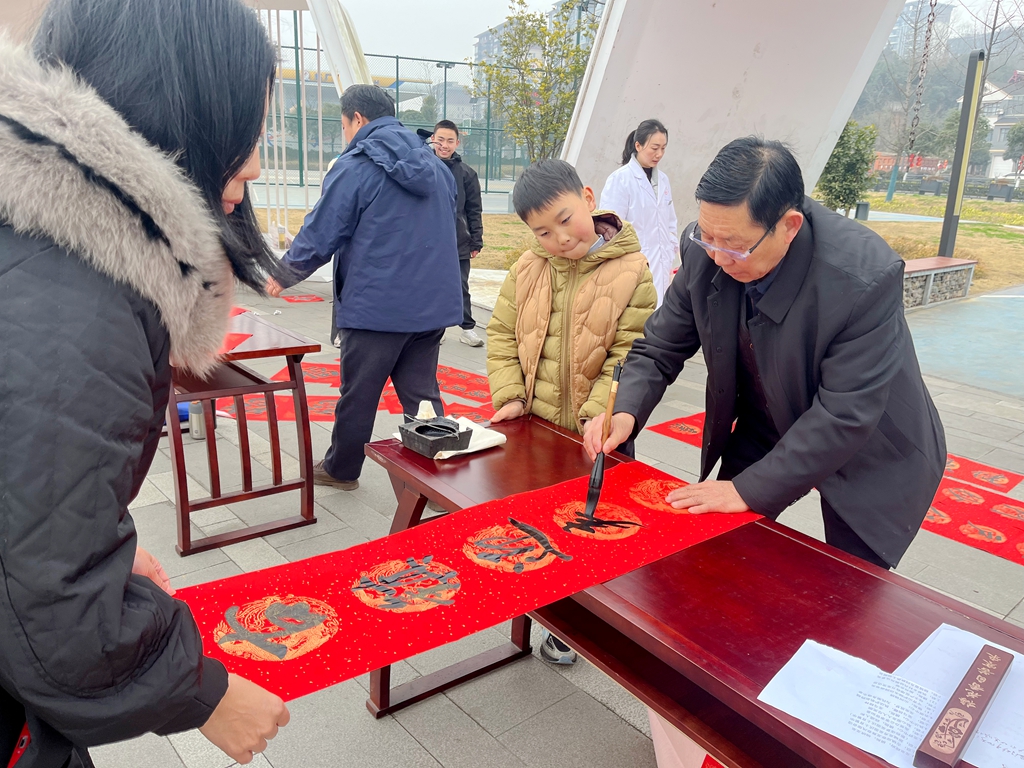 “早就听说今天有送春联活动,特意带着孙子来沾沾喜气!”家住龙镇社区的张连红拿着刚领到的春联,脸上笑开了花,“书法家写的就是不一样,笔力遒劲,看着就喜庆!这‘福’字我要贴在大门正中间,希望全家人新的一年平平安安、顺顺利利。”