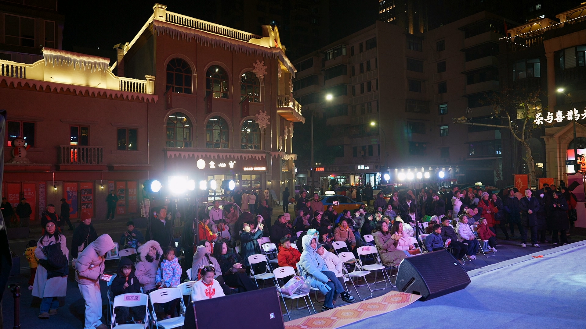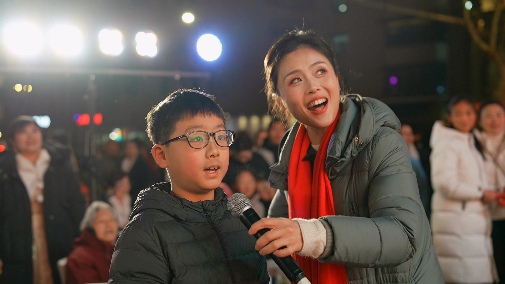 互动环节的设计尤为贴近群众。现场播放着经典歌曲片段,邀请台下观众竞猜曲名并跟随音乐合唱。《大中国》《我和我的祖国》《最炫民族风》等旋律接连响起,台上台下歌声交融,情绪高涨,历史街区化作欢乐的海洋,喜迎新春的喜悦在音乐中流淌。