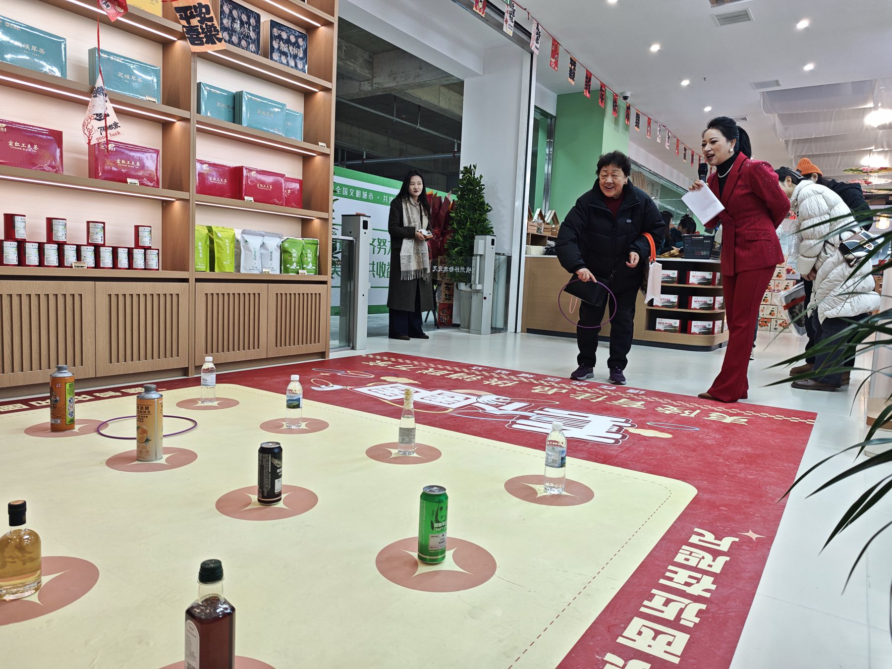 现场互动环节人气高涨,套圈游戏前排起长队,消费即可参与赢取好礼。市民沈女士激动地说:“今天非常开心,买了很多土特产,腊肉腊蹄子,都是来自农村的、比较原汁原味的东西,也很开心能够参加这样的活动,中了这么多奖品,非常开心。 ”