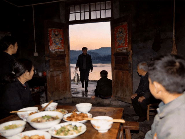 “团年饭”的饭桌上,赵华林给父亲满上一杯酒,“爸,江上又见鱼了。”他轻轻碰了碰父亲的杯子。