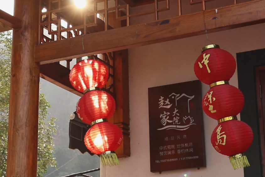 暖阳在江面洒出细碎而璀璨的金光,成为岸边“赵家大院”门前一幅浑然天成的绝美幕布。