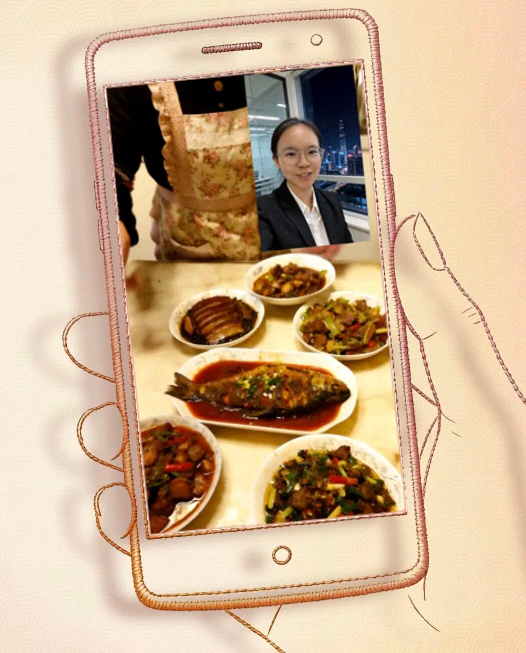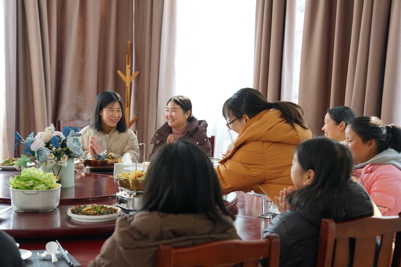 小年“团年饭”,绣娘们放下针线,贴福字、切腊肉、做红烧鱼,厨房里传来欢声笑语。