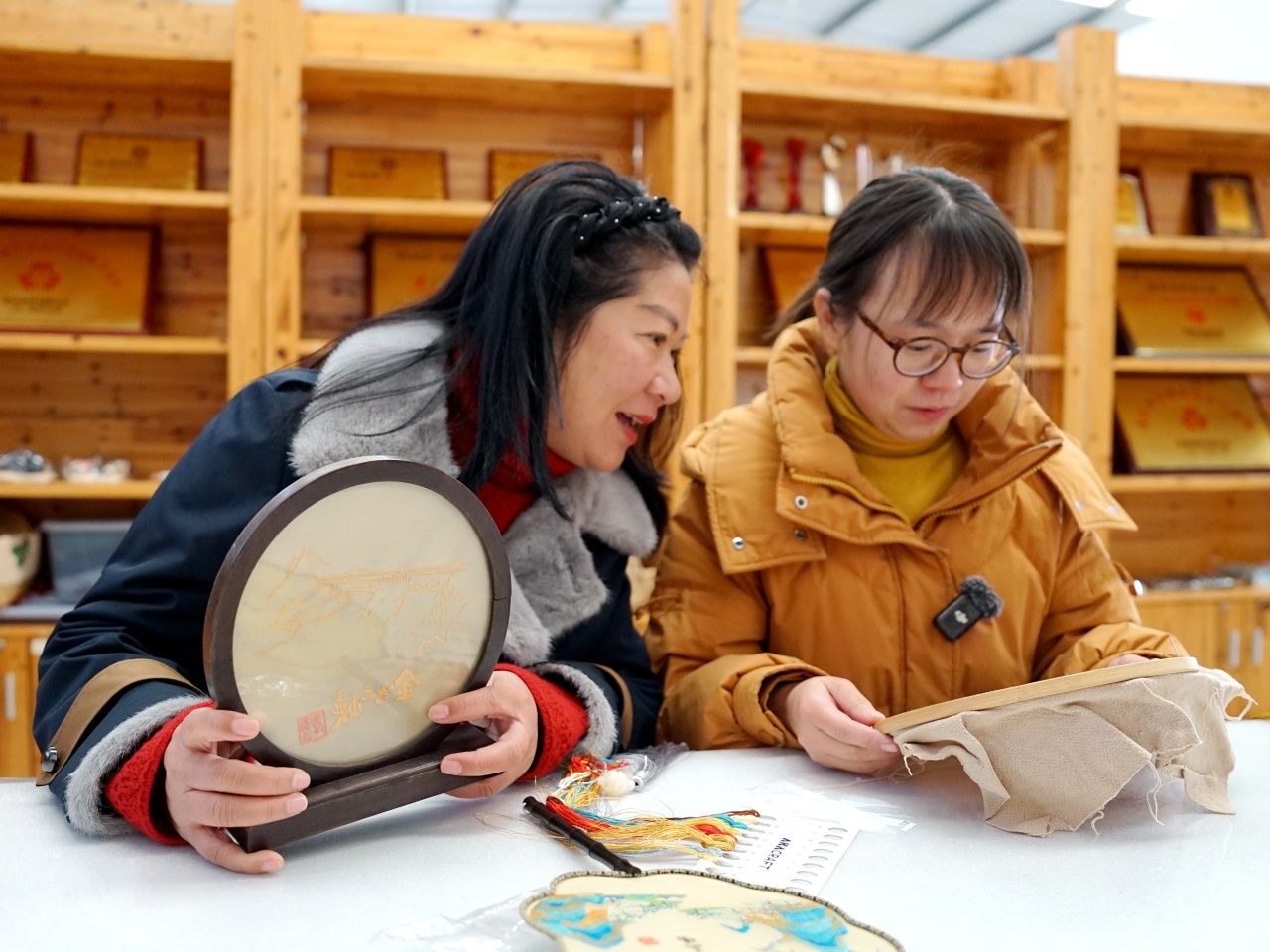 长江北岸,太平溪镇许家冲村,小年的江风拂进热闹的绣坊。