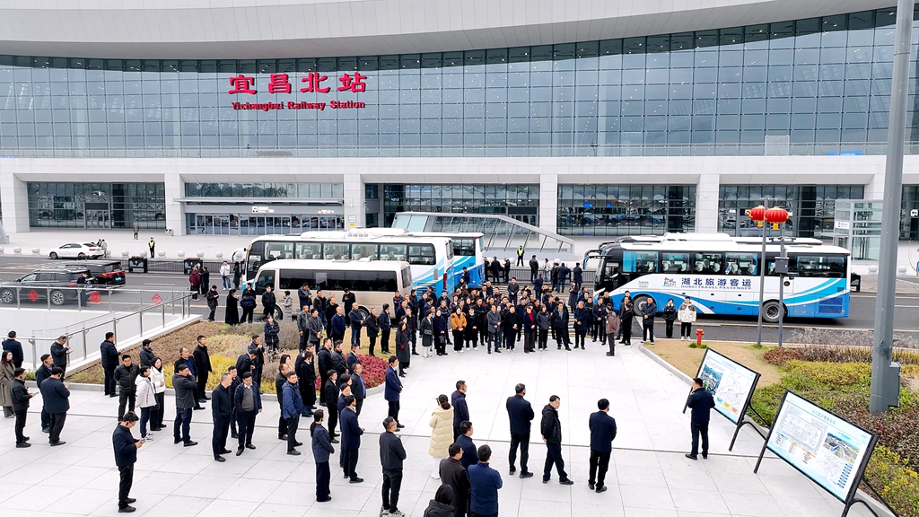 最后,参观队伍抵达宜昌北站,领略国家级综合交通枢纽的磅礴气势。宜昌北站是沪渝蓉、呼南、郑万高铁联络线交会站,主站房建筑面积8万平方米,车场规模9台20线,是宜荆荆都市圈规模最大的高铁枢纽,已于去年年底开通运营,标志着夷陵正式迈入高铁枢纽时代。