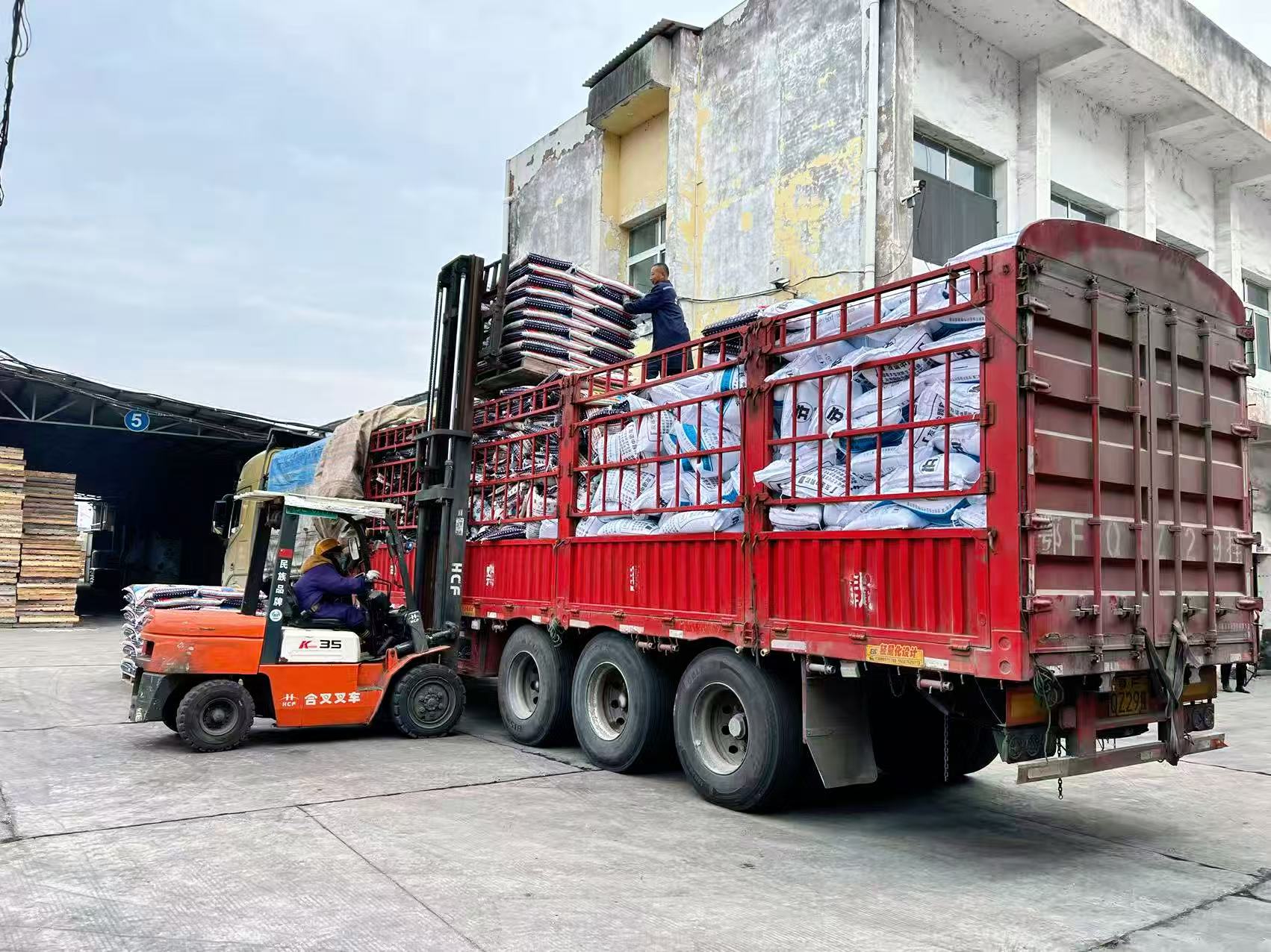 2月27日,记者走进宜施壮公司,映入眼帘的是一派大进大出的热闹火爆景象:在采购环节,一车车磷酸二铵等原材料源源不断地运抵仓库,为肥料生产提供充足的原料供应;在生产一线,三四台叉车来回穿梭,将刚下线的肥料运出车间,装上大卡车,再运往夷陵大地,全力满足春耕备耕的用肥需求。