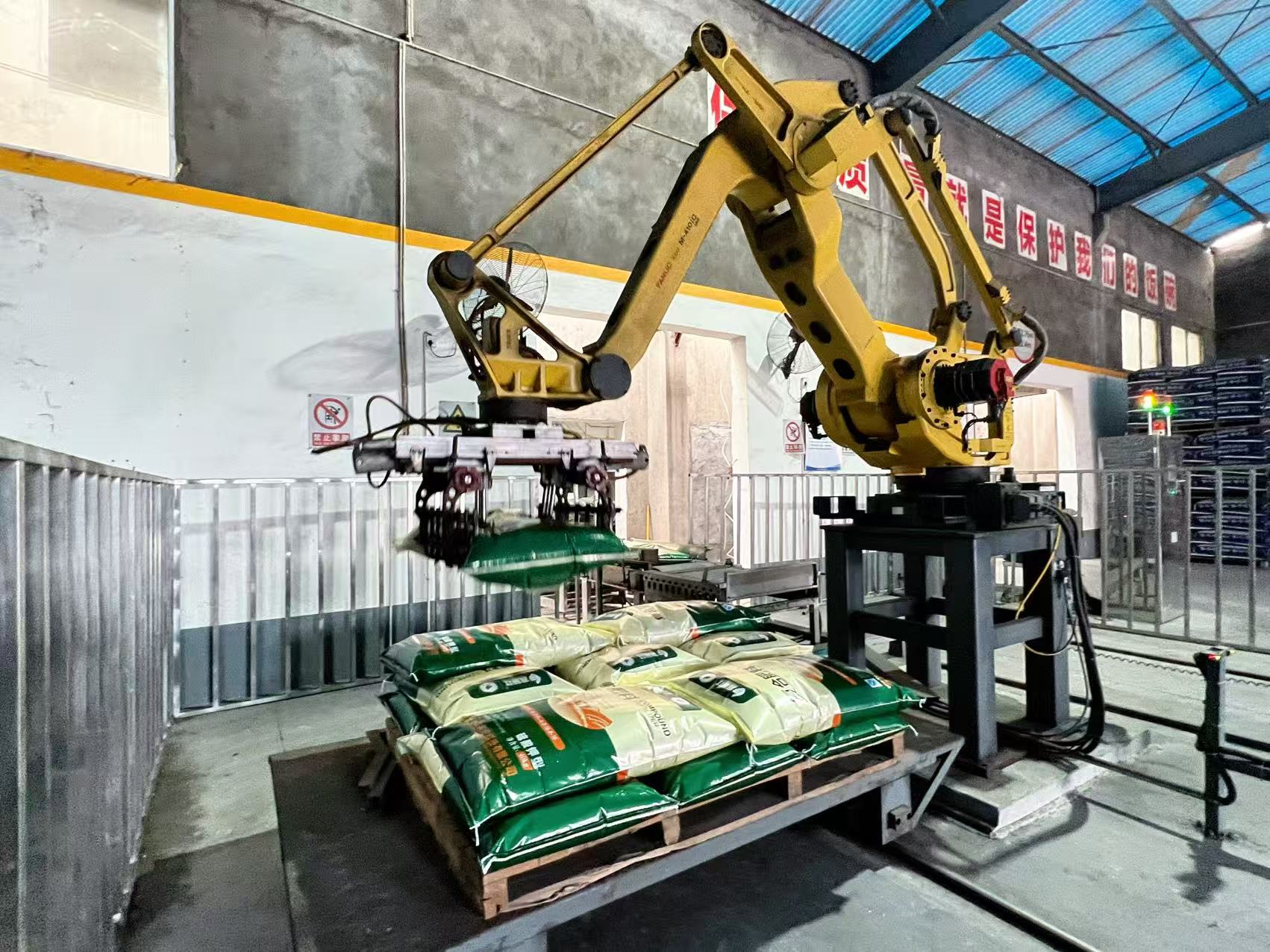 寓发展于服务,在发展中提升服务,这一直是宜施壮公司坚守的经营理念。为此,宜施壮围绕“提升服务”,从去年起就提前完成两大科技赋能项目。将生产线最前端的投料系统由半自动化升级为全自动化,每小时投料量从20吨提升至30吨;同时,在生产线末端安装堆垛机器人设备,生产效率提升20%以上。