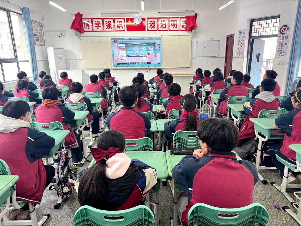 课堂上,虚拟数字人主持、大国重器展示、智慧医疗应用、前沿科创成果等内容生动呈现,AI技术在生产生活、科研攻关中的广泛应用,让同学们直观感受科技强国的蓬勃力量。大家认真观看、积极互动,在沉浸式体验中理解“AI不是取代,而是同行”的深刻内涵。