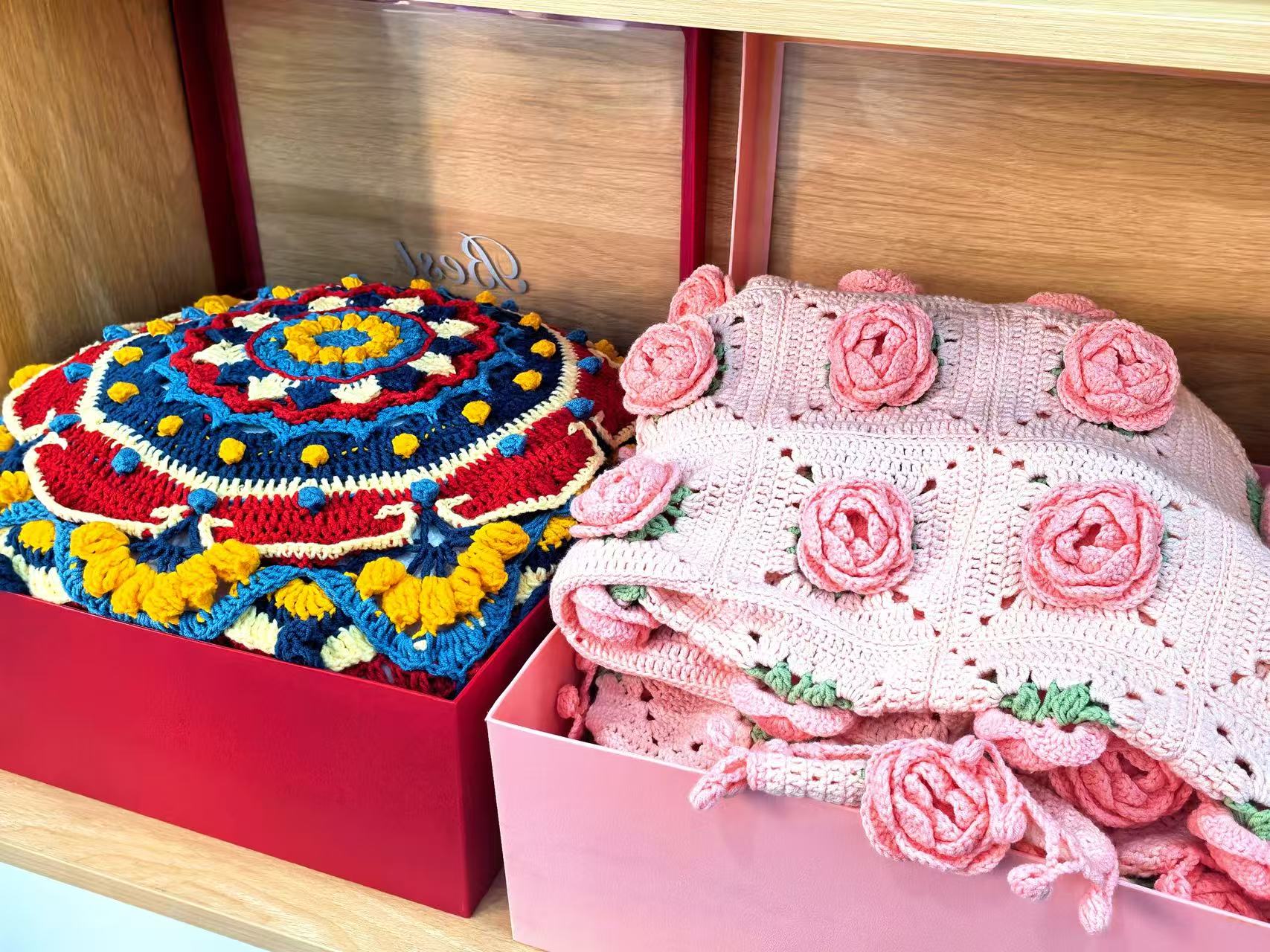 “刚开始大家都不太敢尝试,觉得自己能行吗?”易苗回忆。但她一点点教,姐妹们一点点学。慢慢地,普通的毛线在她们手中变成了精致的围巾、可爱的挂件、寓意吉祥的摆件。