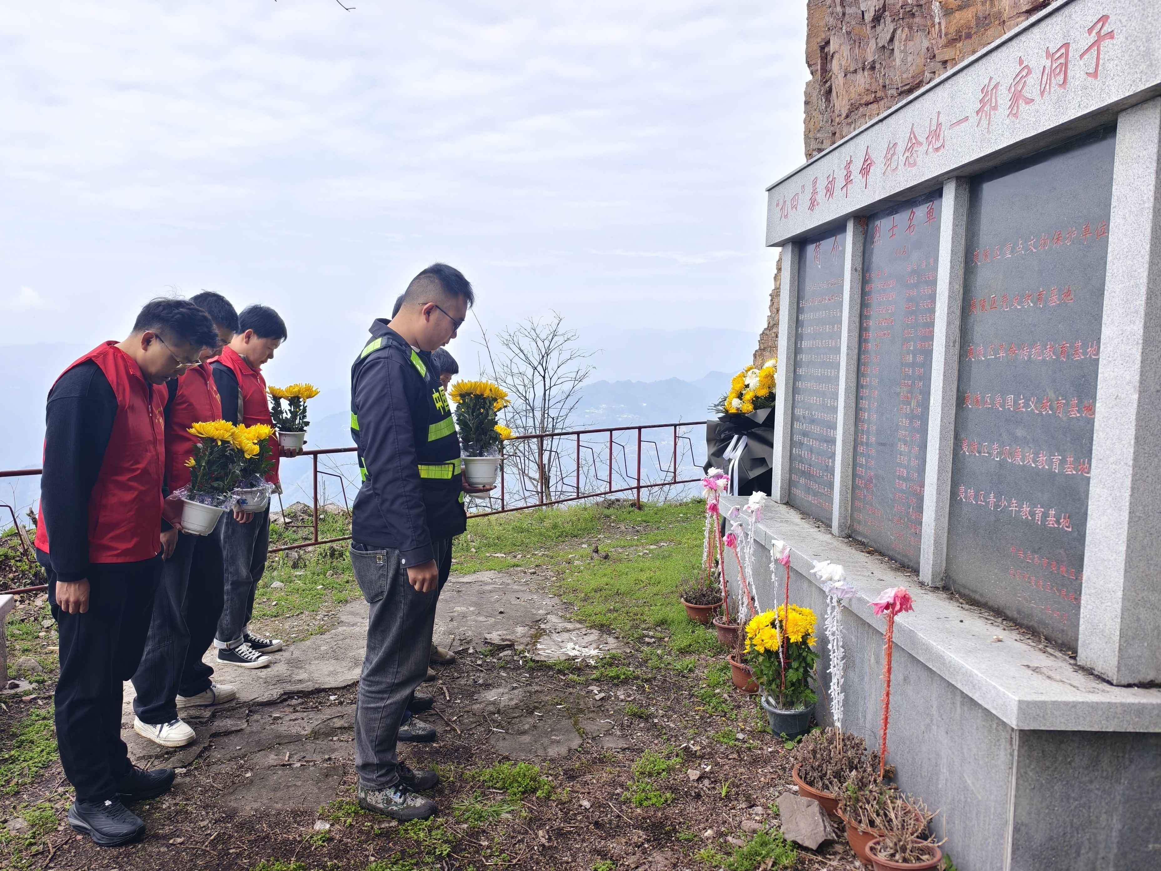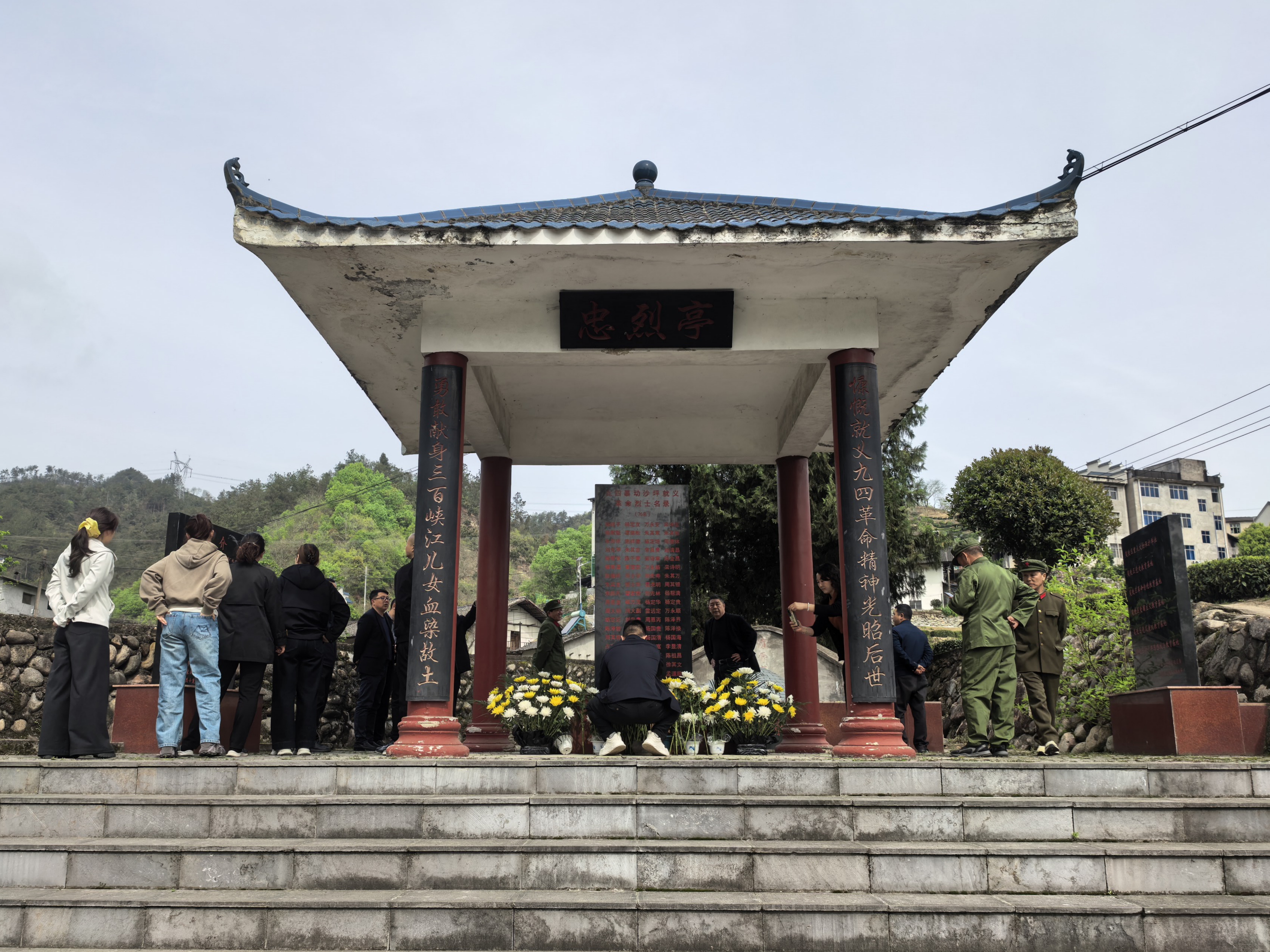 上午10时30分,祭扫队伍来到沙坪“九四”革命烈士纪念亭和石洞坪烈士墓集中迁葬点。大家自发分成小组,有的俯身擦拭墓碑,有的清理杂草落叶,有的为烈士墓敬献盆花。一束束鲜花寄托着无限哀思,一个个鞠躬表达着崇高敬意。